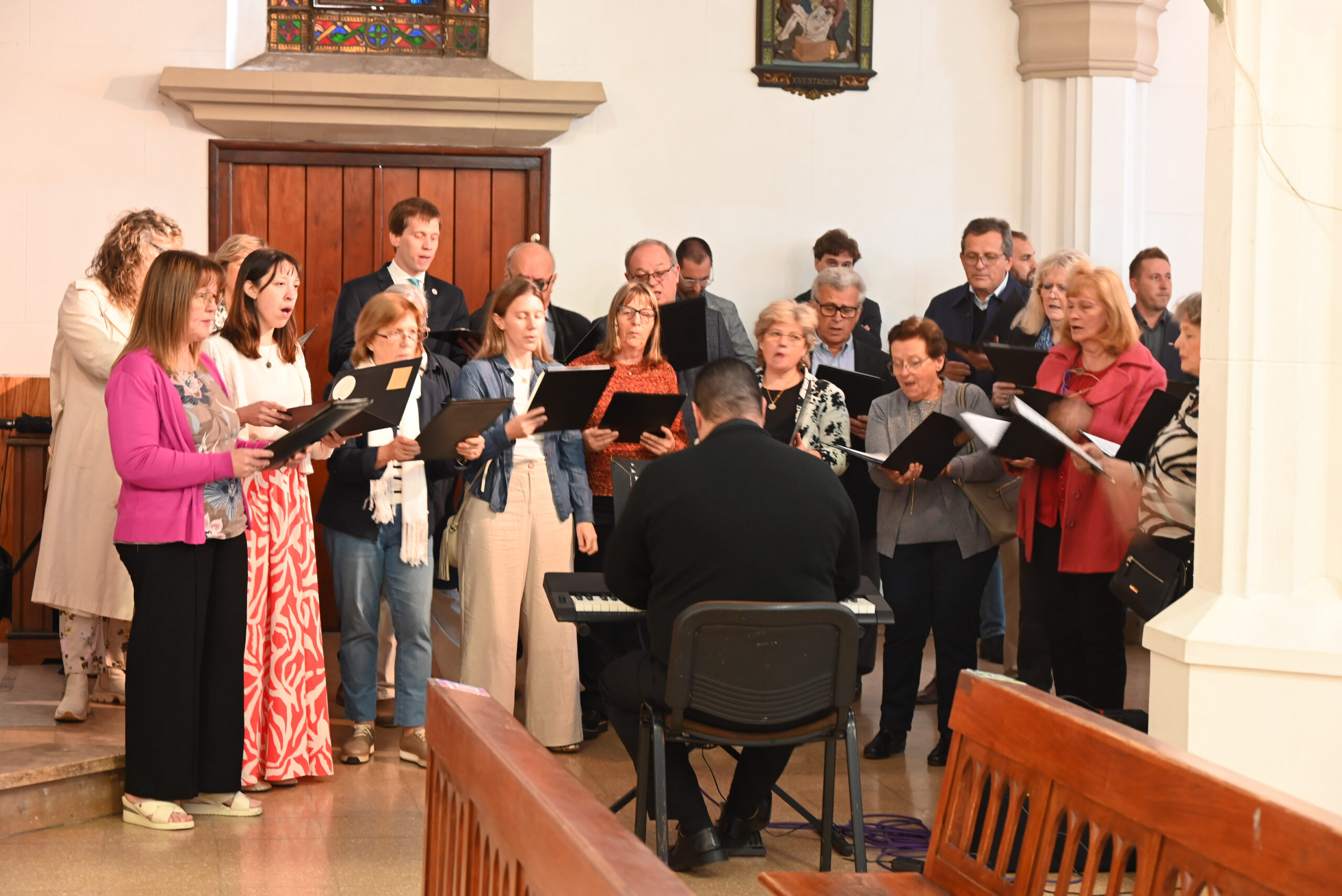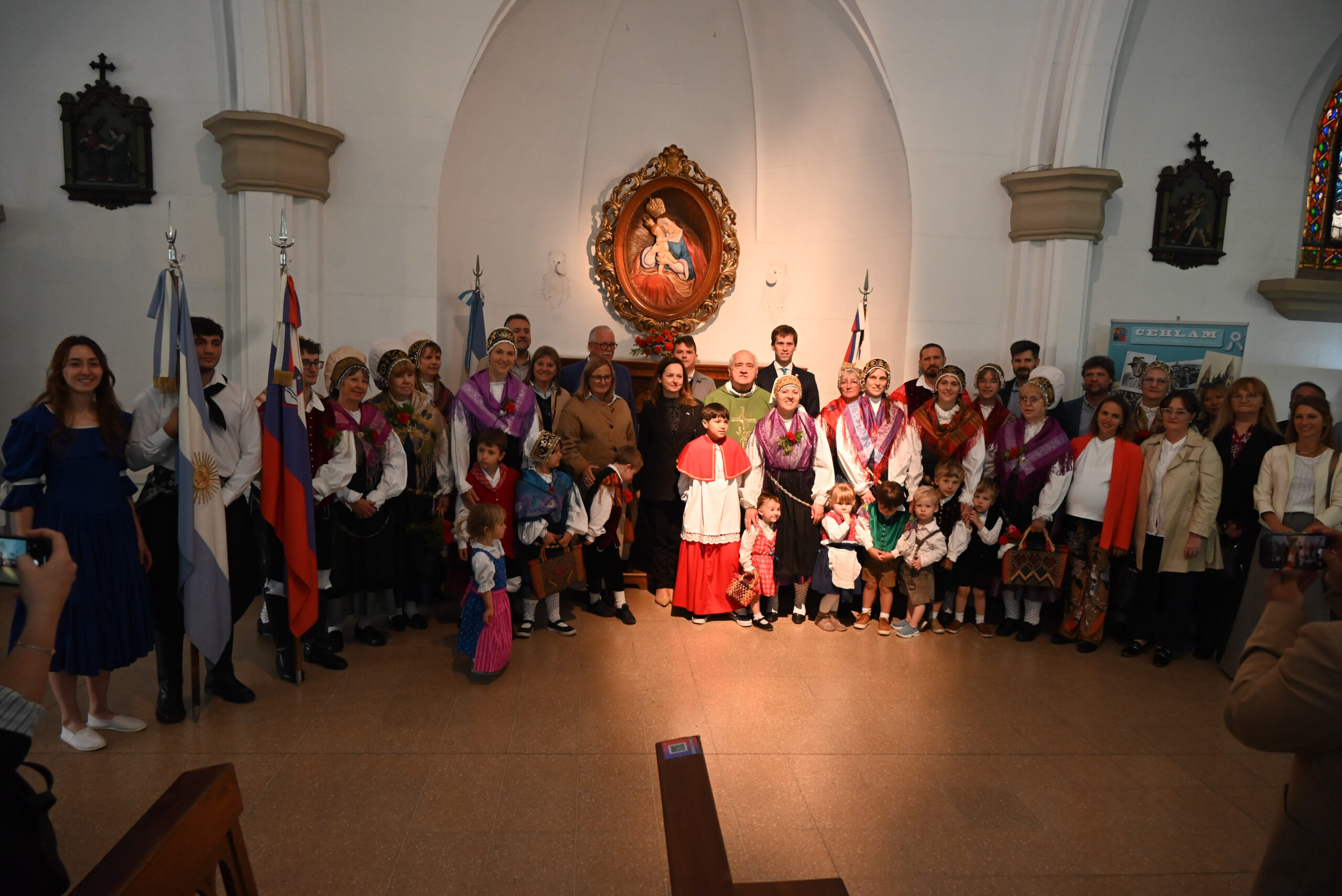 Opoldne se je začela slavnostna maša za vse žive in rajne rojake iz našega okraja. Maševal je g. Franci Cukjati, petje pa je napolnilo stolnico z zvoki mešanega pevskega zbora San Justo pod vodstvom prof. Diega Pereza. Posebej ganljiv trenutek je nastopil, ko so s petjem sodelovali tudi gostje iz Slovenije – člani okteta In spiritu. Njihovi glasovi so se nežno dotaknili src vseh prisotnih, kot bi veter iz domovine pobožal vsakega rojaka, ki že dolgo hrepeni po domačem zvoku in besedi.