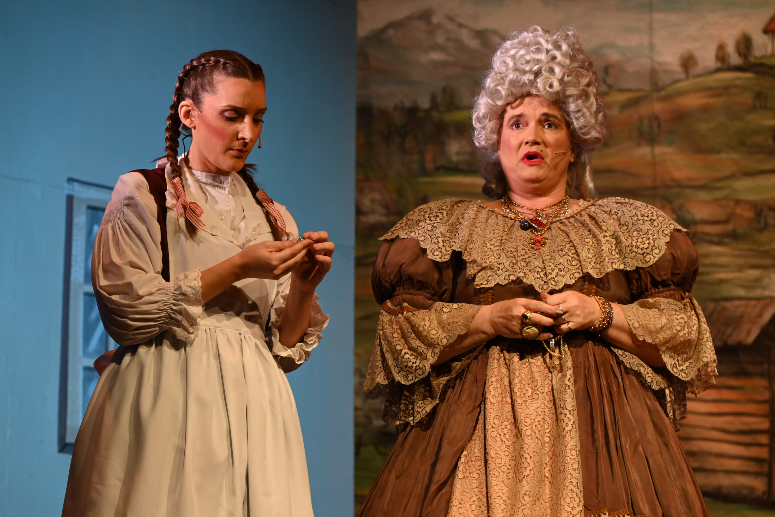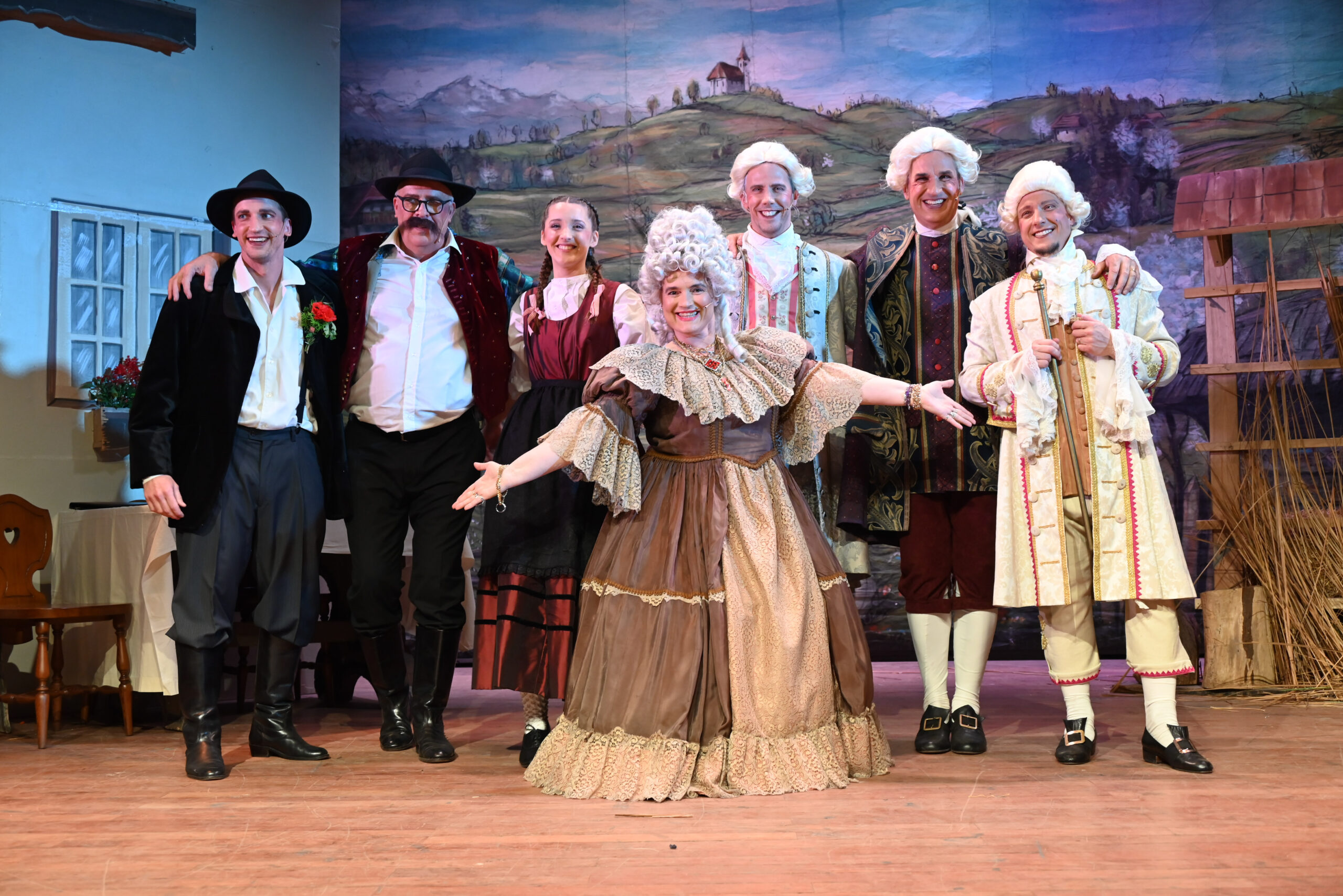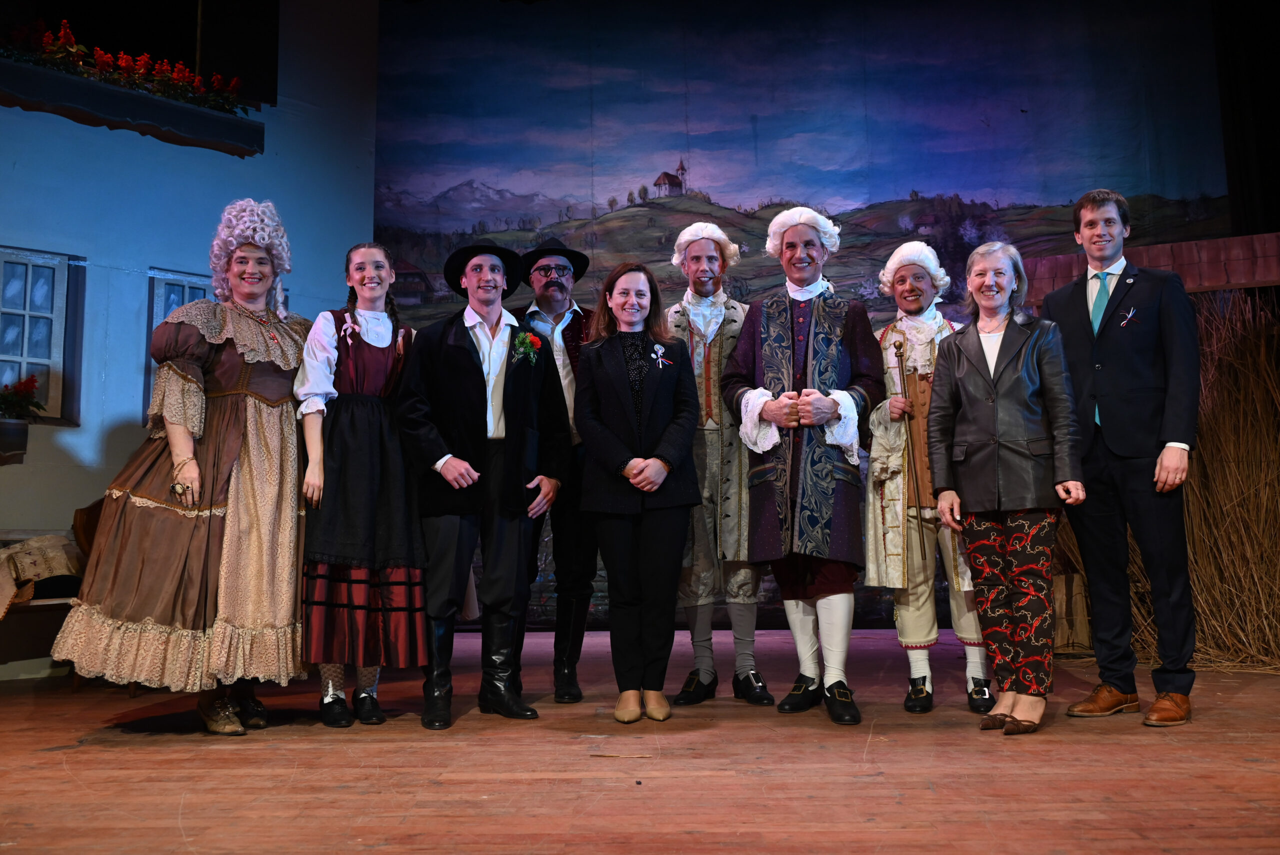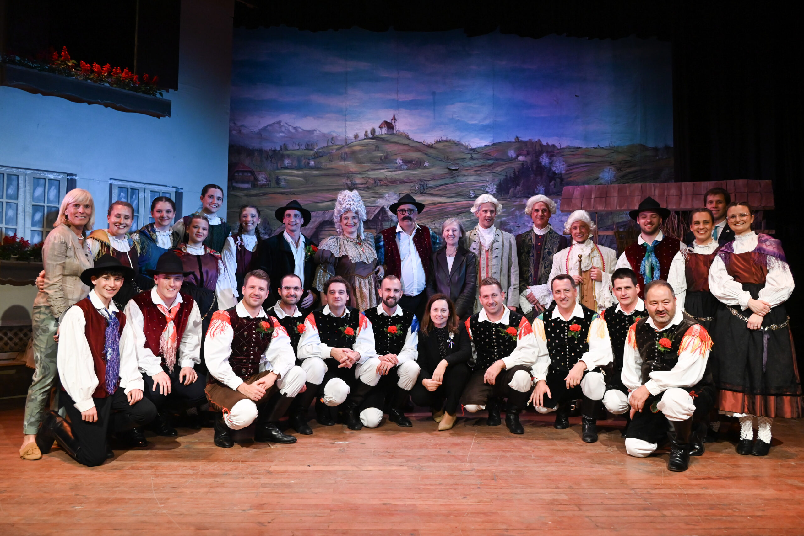 Posebno moramo poudariti sceno, kostume, maskiranje in pričeske. Scenografija je bila zelo dobro zasnovana in izpeljana. Zahvala naj gre Silviji Tekavec za risbeni načrt, Pablo Zafra je pa poskrbel, da je s pomočniki postavil kulise. Oder je bil lepo urejen in domiselno postavljen, kar je ustvarjalo prijetno kmečko vzdušje. Kostumi so bili prav tako odlični – barviti, značilni za čas dogajanja in lepo usklajeni z vsako vlogo. Videlo se je, da je bilo v pripravo vloženega veliko truda in ustvarjalnosti. Iskrena zahvala nenadomestljivi Lučki Bergant Uštar, ki je skrbela za brezhibnost mikrofonov, ki so jih tehnično urejali člani skupine Luč & zvok Našega doma. Izredno delo je opravila tudi šepetalka Veronika Godec Marini. Osvetljavo sta mojstrsko in skrbno pripravila Aleks Šuc in Matjaž Ribnikar. Z odličnim uspehom sta zaokrožile odrsko predstavo Veronika Malovrh in Ana Clara Zafra, ki ste lepo poskrbele za maskiranje in pričeske.