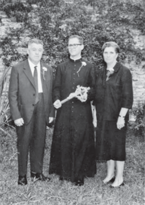 “Pred vstopom v zavodsko cerkev je novomašnika pozdravila s priložnostno pesmico ter mu izročila novomašni križ Geržiničeva Teodorca, pevci Sanmartinskega pevskega zbora pod vodstvom pevovodje g. Vinka Klemenčiča so mu pa zapeli v pozdrav slovensko novomašno „Novi mašnik bod’ pozdravljen“. Ta zbor je pel tudi med novomašnikovo prvo daritvijo Bogu, pri kateri sta mu asistirala gg. Jure Rode in France Urbanija. Novomašni pridigar je bil g. direktor msgr. Anton Orehar. V govoru je razvijal misli o duhovniku učitelju, očetu in pastirju. Po novi maši je bila zahvalna pesem.