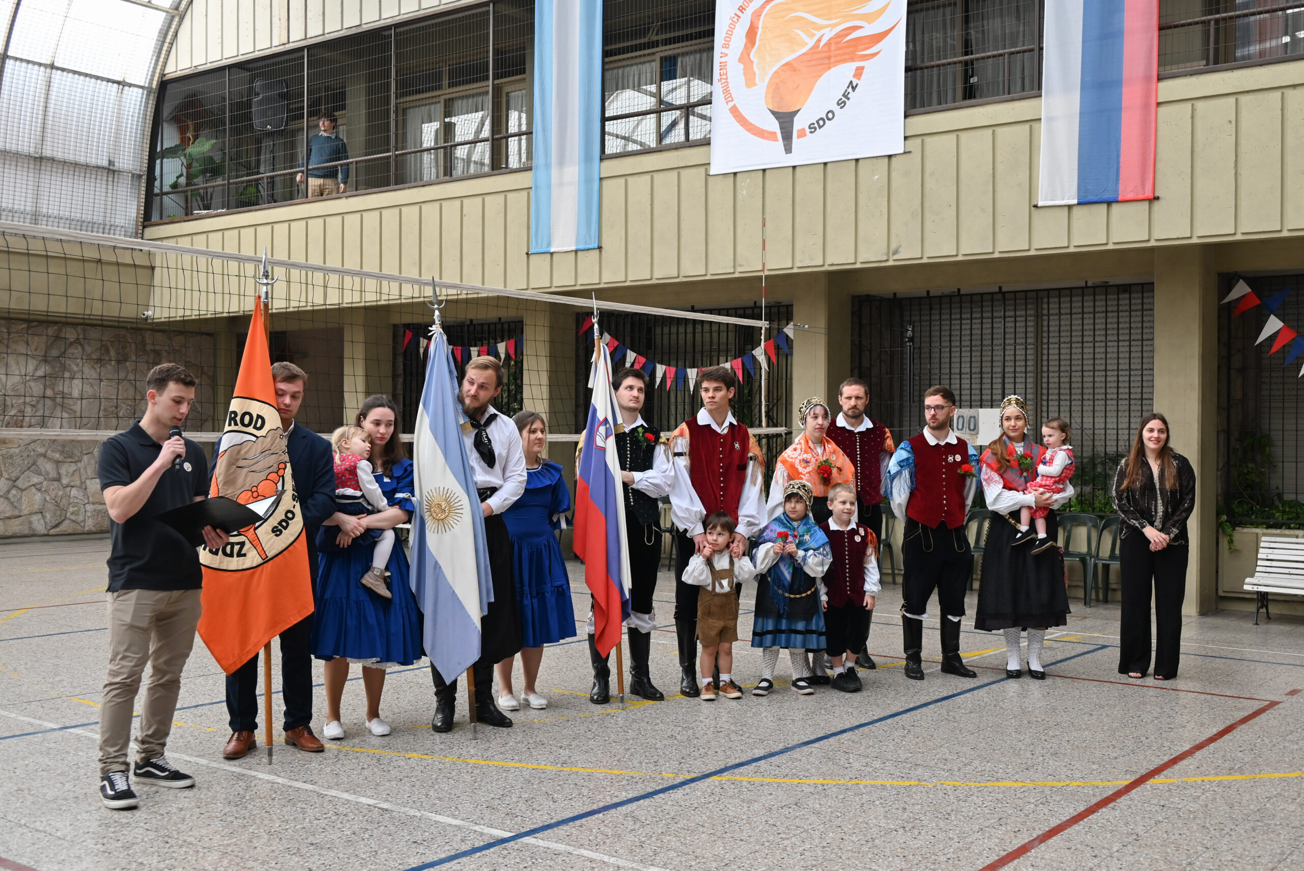 Po maši smo se premaknili v dvorišče Našega doma, kjer je predsednik mladine, Pavli Malovrh, izrekel dobrodošlico vsem navzočim in želel, da bi lepo preživeli dan. Ponosno smo zapeli argentinsko ter slovensko himno.