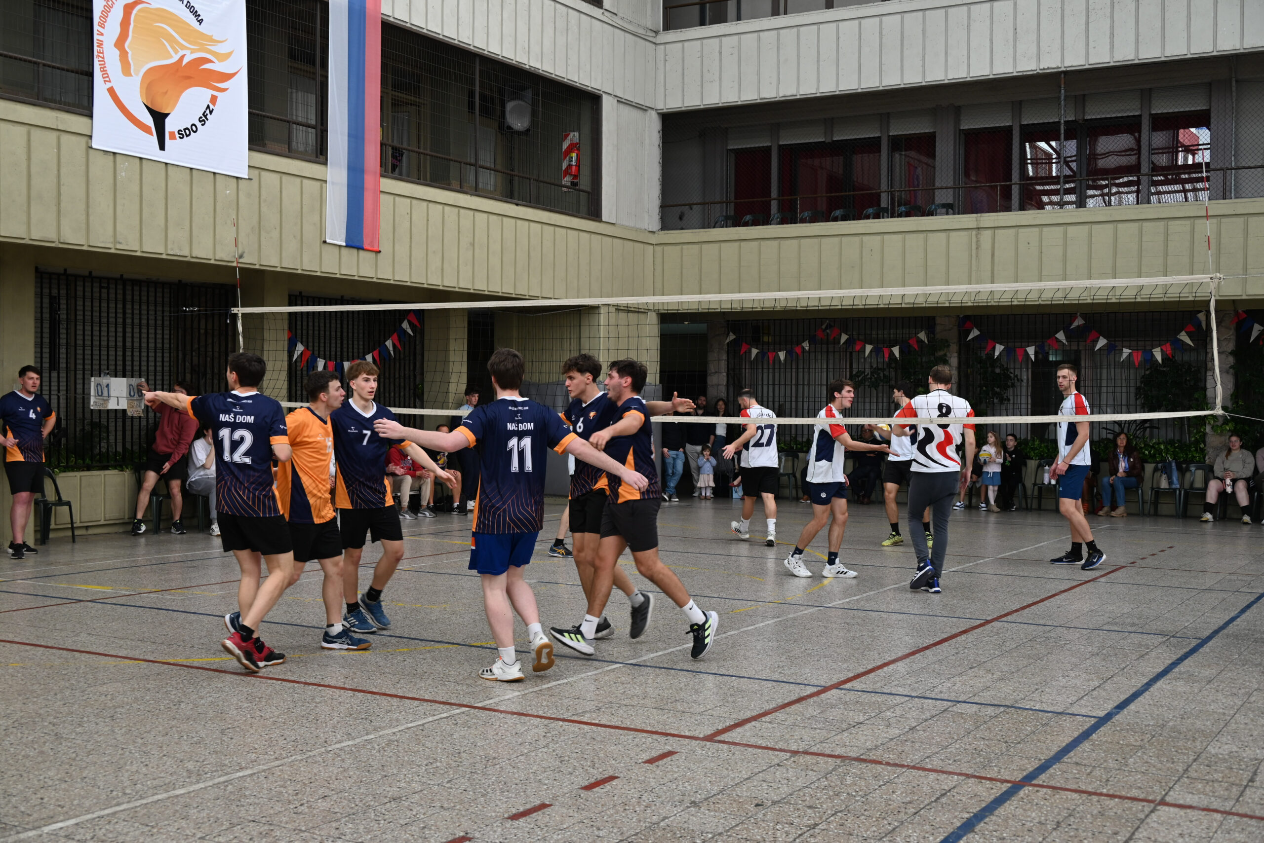 Nato so se športne ekipe pripravile za začetek celodnevnega turnirja odbojke. Ostali gostje so pa uživali v prijetni družbi medtem, ko so navijali za svoje najljubše skupine. Lepo je bilo videti toliko mladih, ki so sodelovali pri športu. Letos je bilo vpisanih 6 dekliških ekip, ki so predstavljale vse naše slovenske domove. Pri fantih je tekmovalo 8 skupin, sestavljene z mladimi in starejšimi iz raznih okrajev.