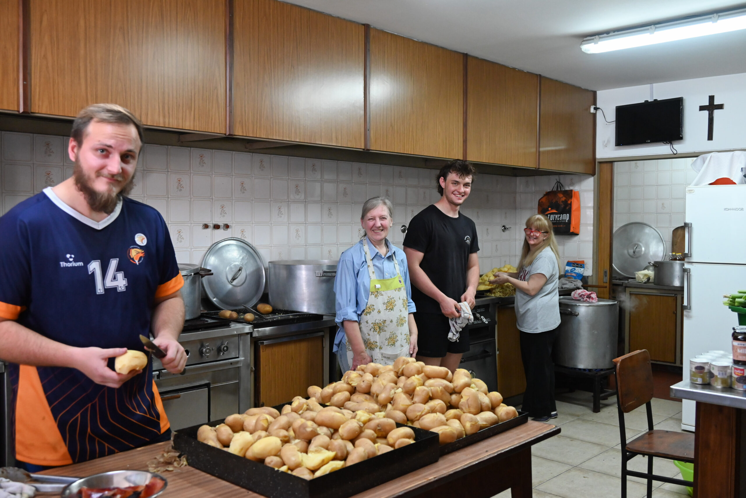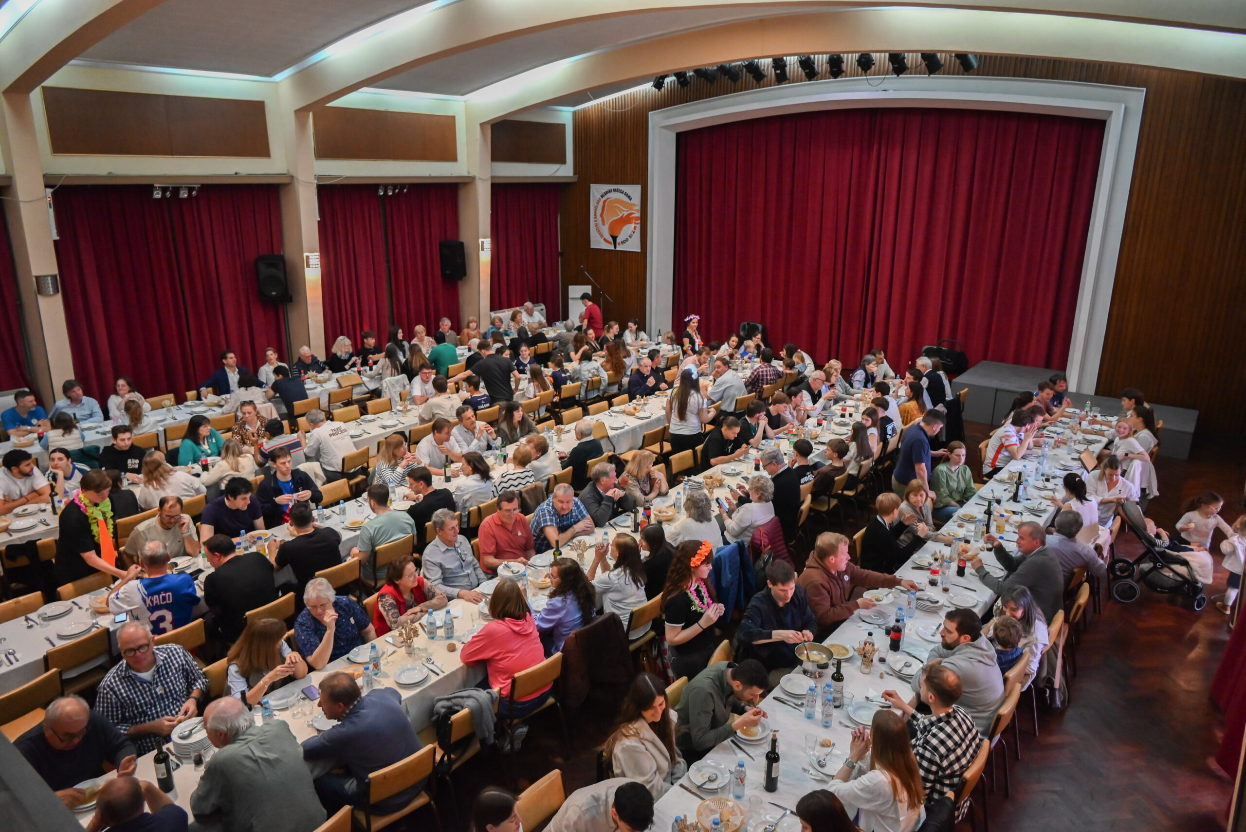 Opoldne so nas v dvorani že čakale pogrnjene mize. Mladci in mladenke so veselo postregli okusno kosilo, ki so ga pripravili Nejko, Ivana, Andrea in Ani skupaj z mladimi pomočniki. Tudi v spodnjih prostorih doma so bile na razpolago dobrote na žaru.