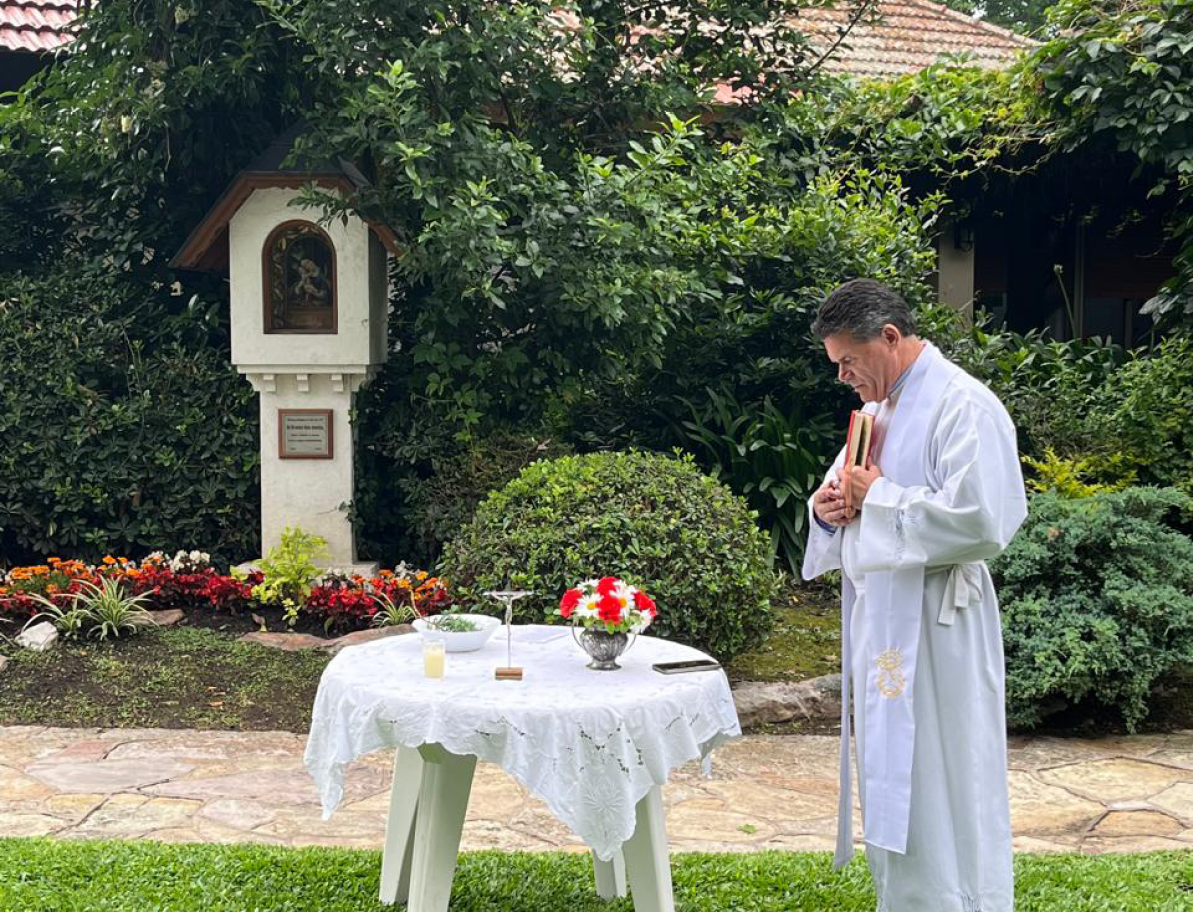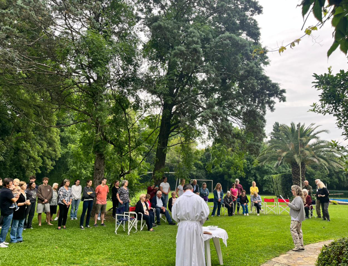 Kljub deževnemu vremenu je na Naši domačiji vedno lepo! Okusni asado, ki so ga pripravili, nas je že čakal na lepo pogrnjenih mizah. Naj Bog blagoslavlja ta kraj in vse, ki se na njem srečujemo. Naj nas naša nebeška Mati, Devica Marija, navzoča v kapelici pod podobo Marije Pomagaj, spremlja in nam bo srednica vseh milosti, da bi se skozi vse leto in še dolga leta srečevali na Naši domačiji, kakor pravi naše geslo: »S prijatelji v naravi.«