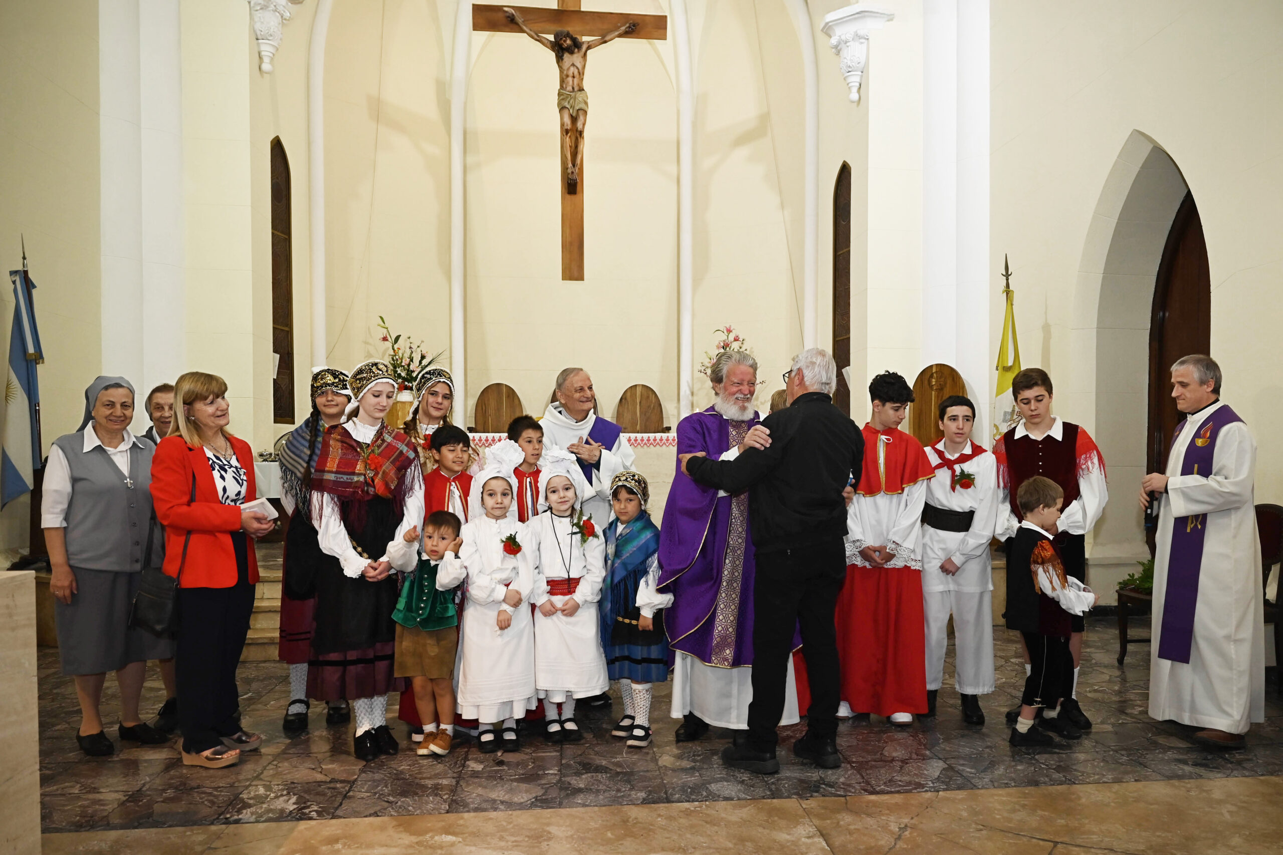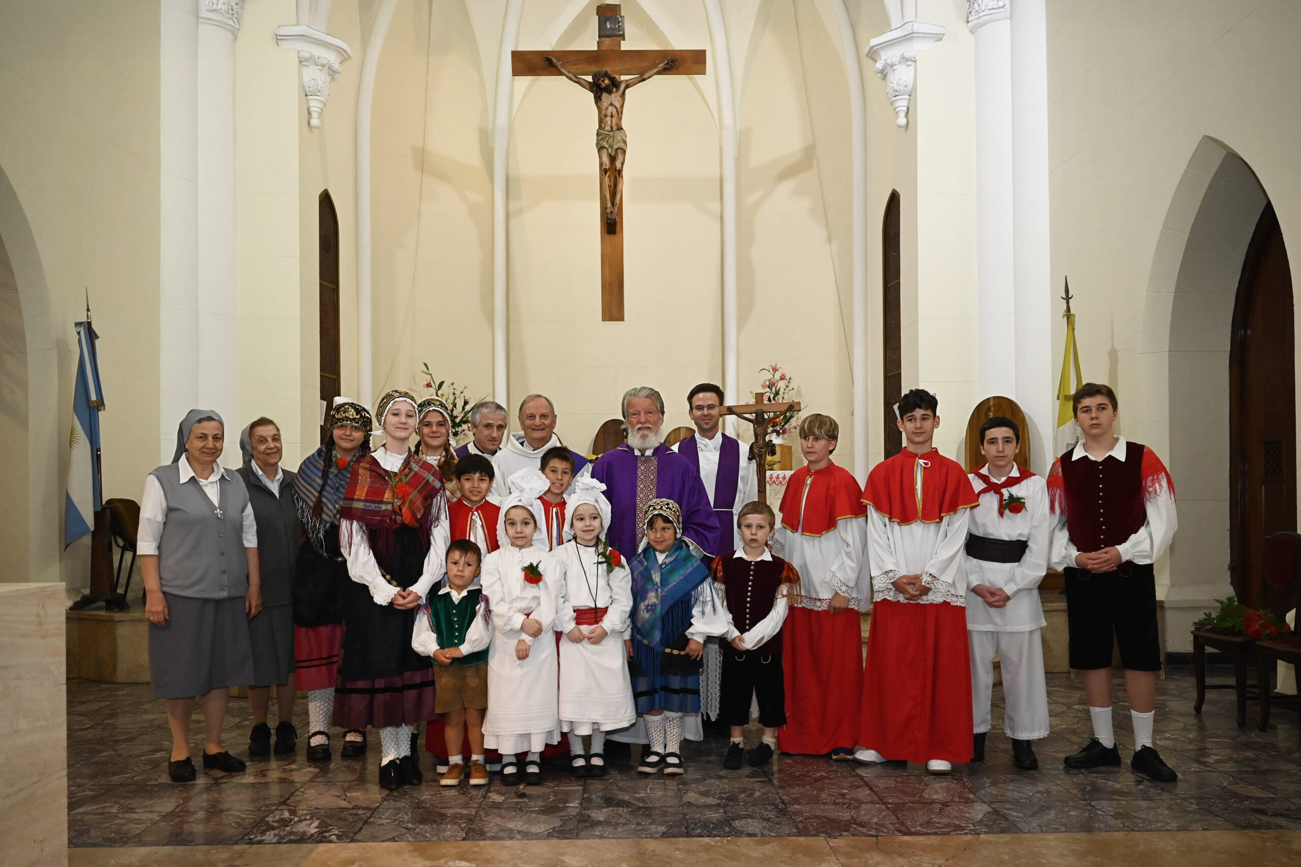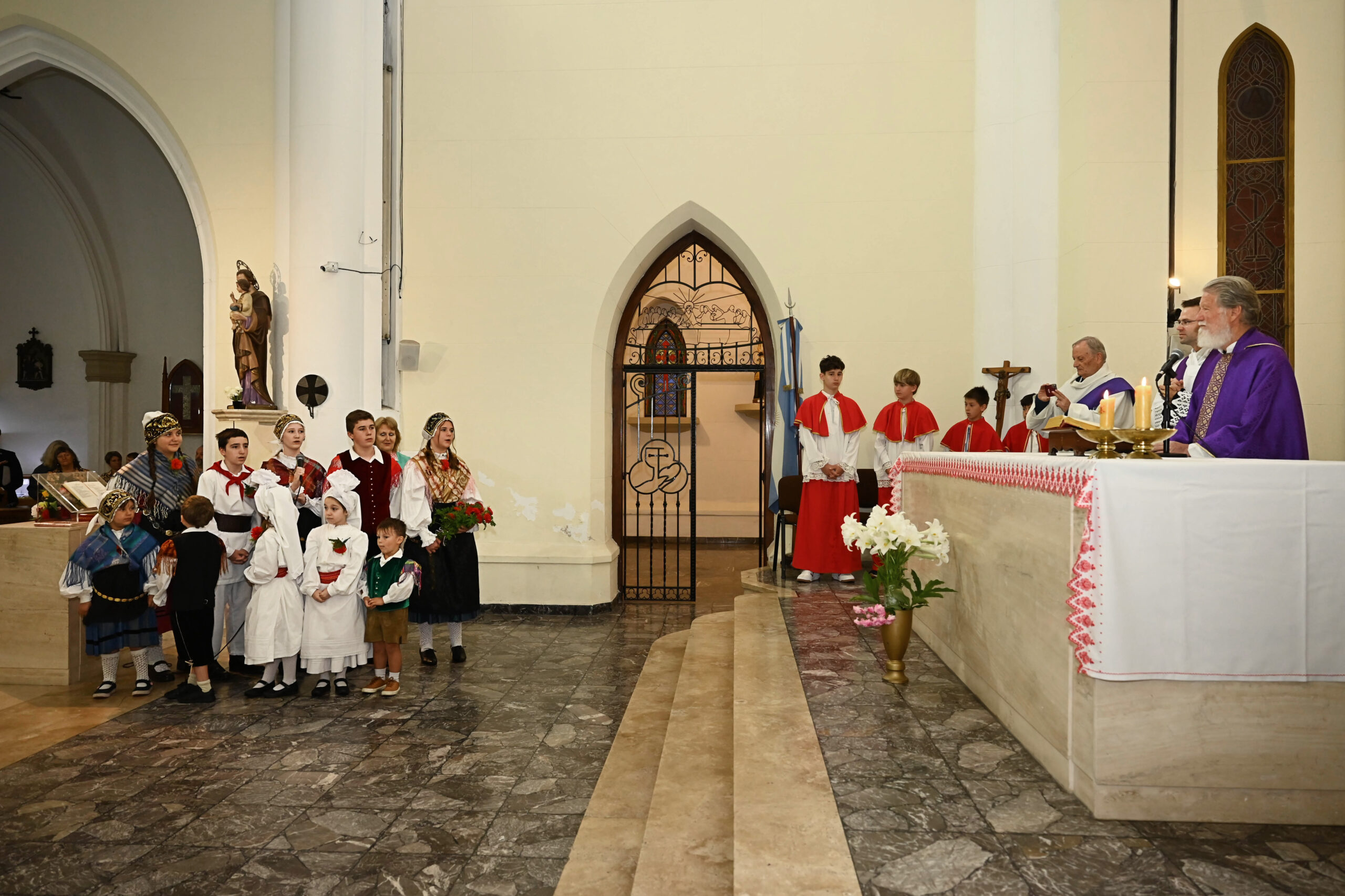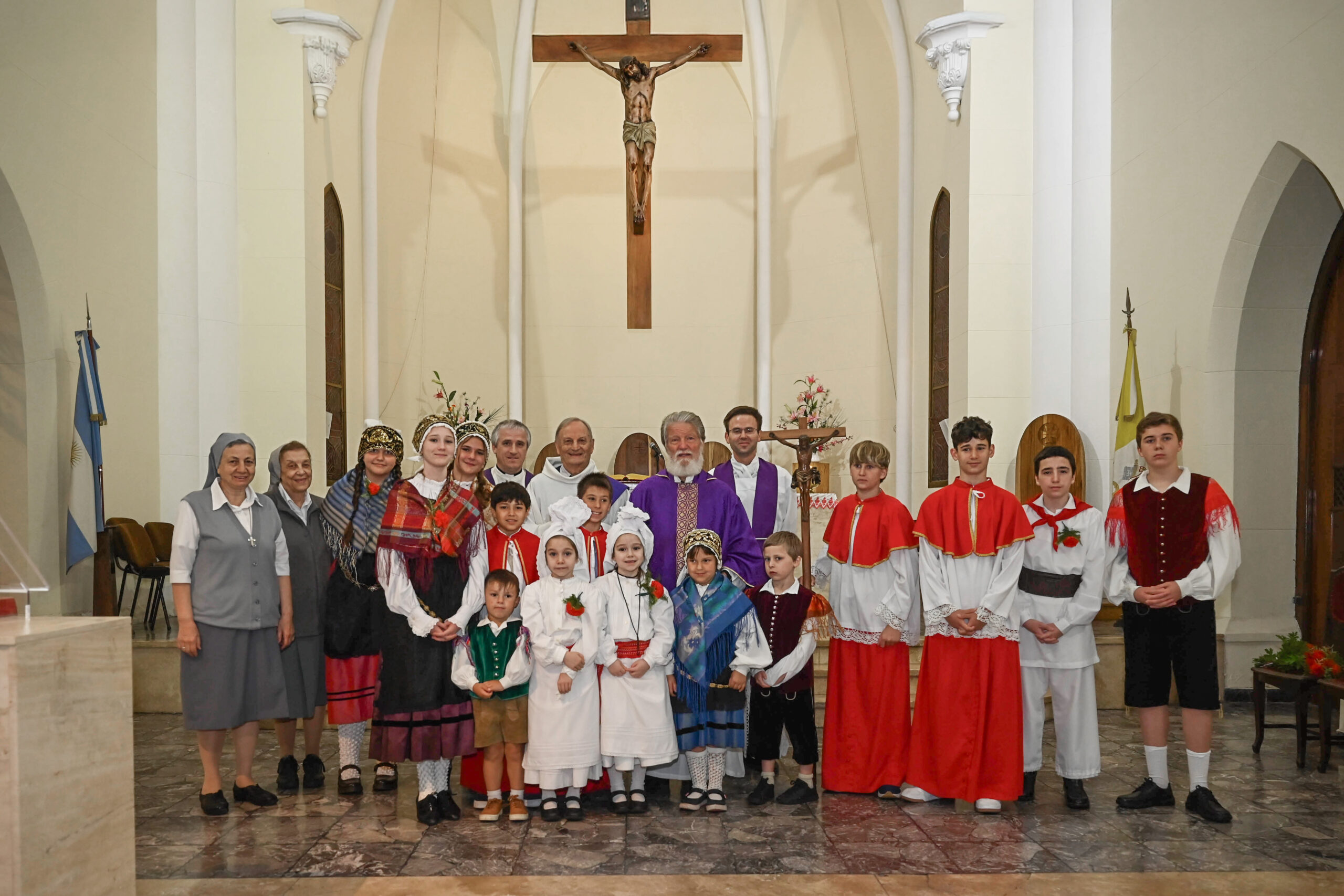 Učenci Balantičeve šole so ga pozdravili in mu čestitali v slovenskih narodnih nošah ter mu izročili šopek. Pri maši so bili navzoči tudi duhovniki slovenske skupnosti – g. Robert Brest, g. Gašper Mauko in diakon g. Janez Perharič. Mladina Našega doma je lepo pela med mašo.