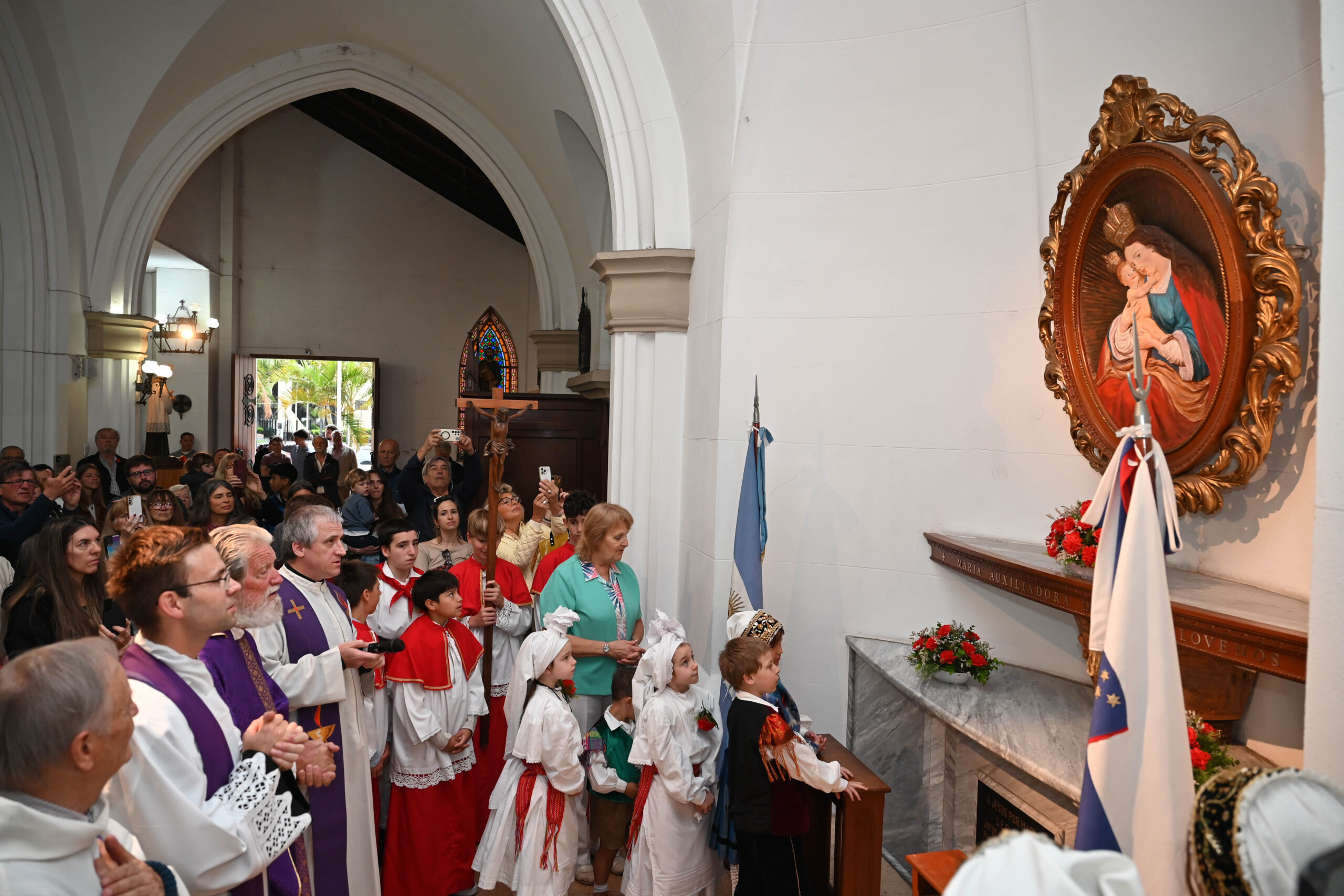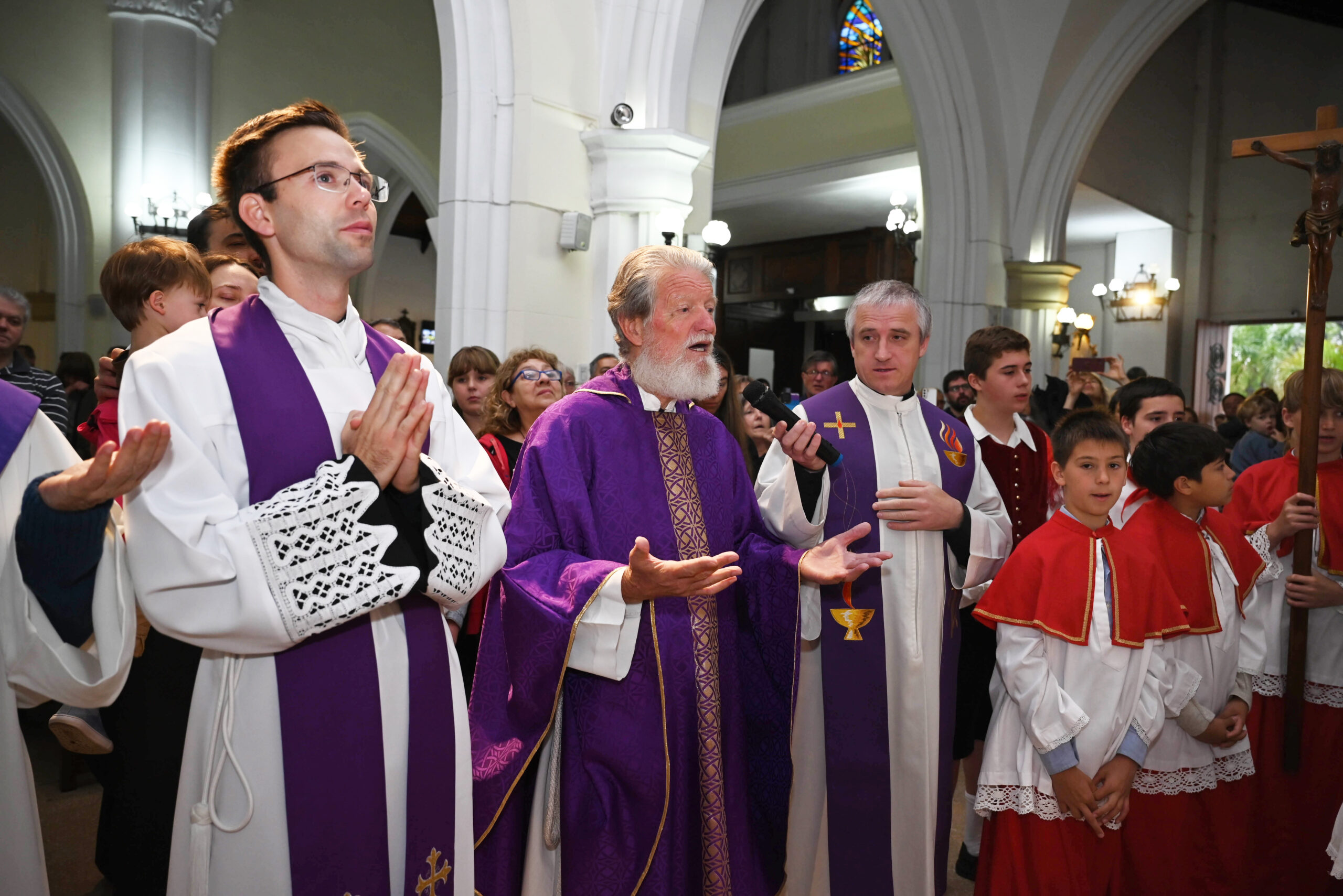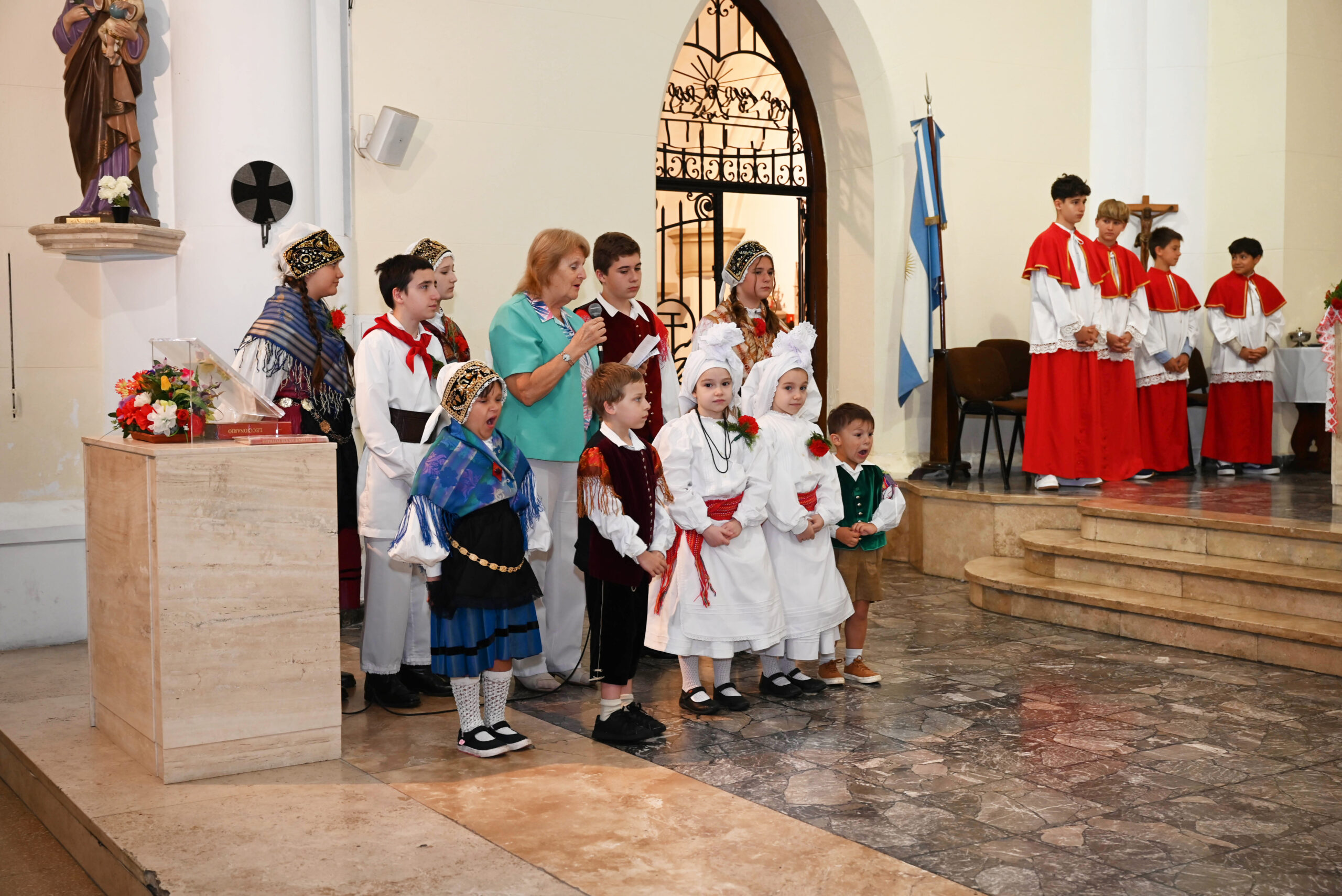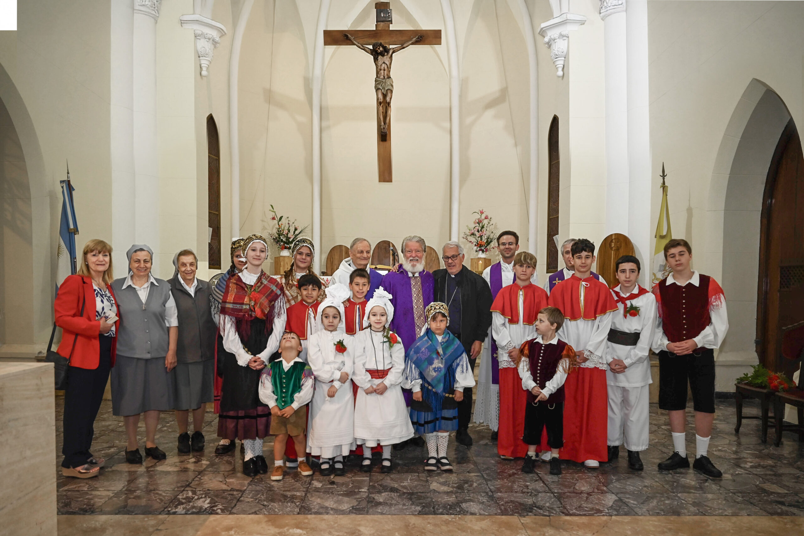 Učenci Balantičeve šole so ga pozdravili in mu čestitali v slovenskih narodnih nošah ter mu izročili šopek. Pri maši so bili navzoči tudi duhovniki slovenske skupnosti – g. Robert Brest, g. Gašper Mauko in diakon g. Janez Perharič. Mladina Našega doma je lepo pela med mašo.