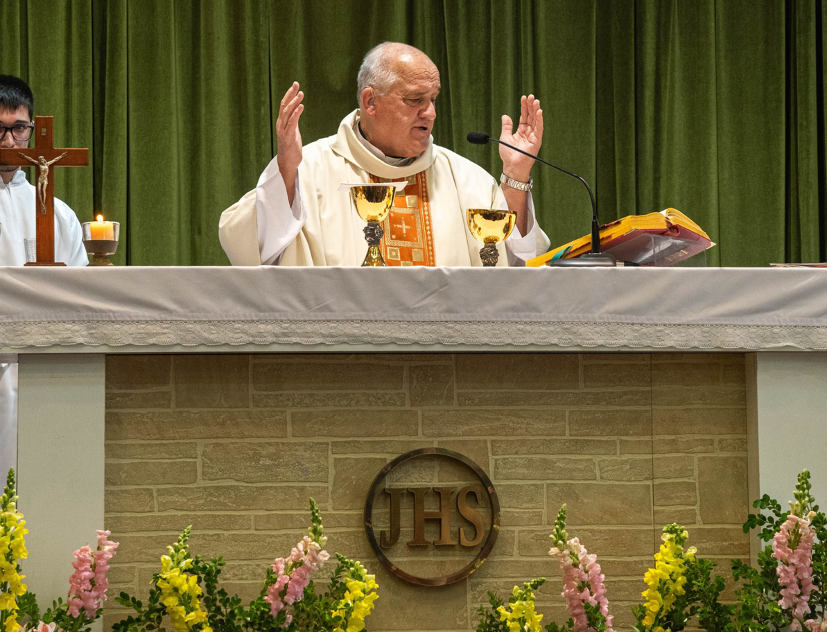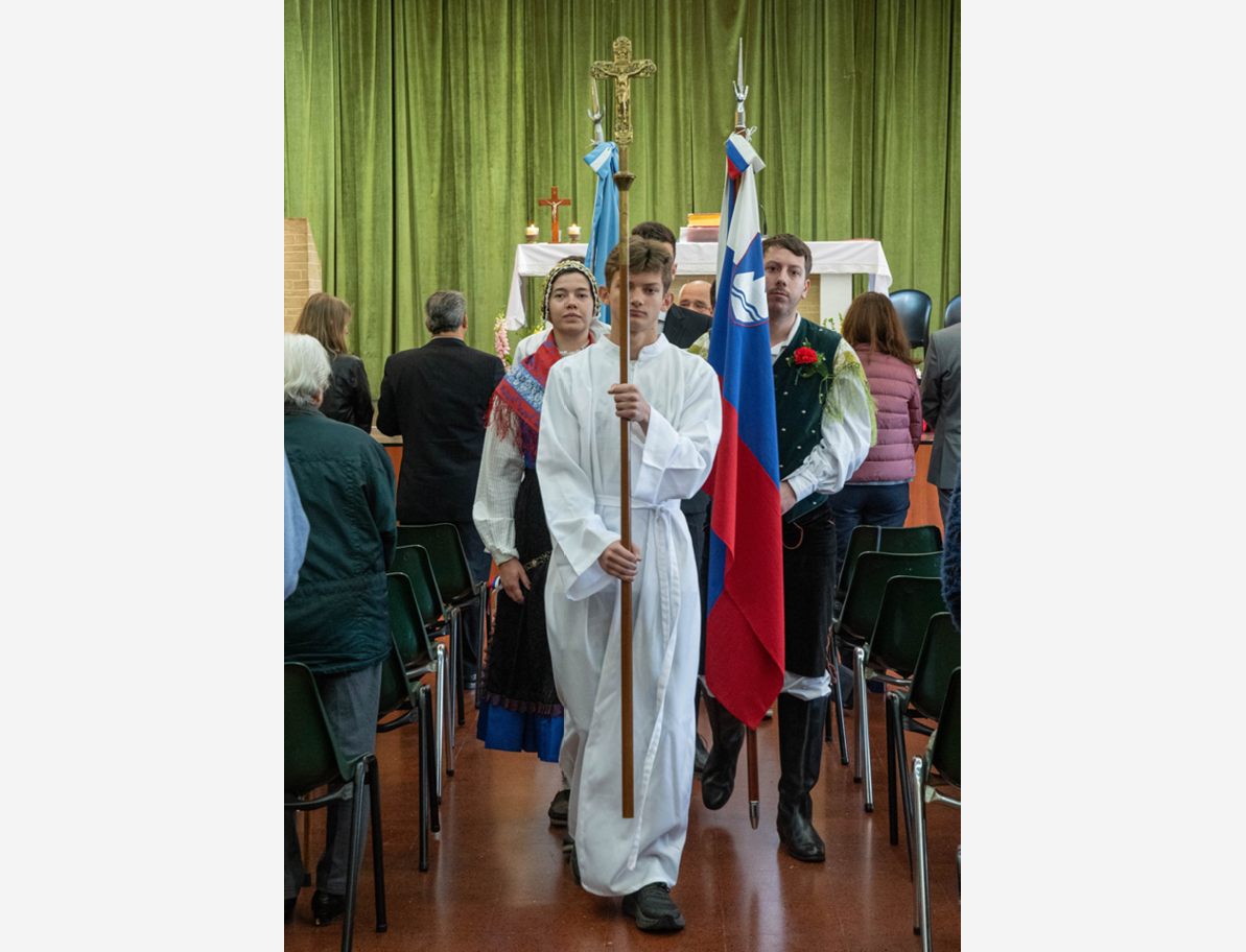 Slavje smo začeli na dvorišču z dviganjem argentinske in slovenske zastave, ob petju obeh himn in pozdravu predsednika doma, Marka Selana. Sledila je sveta maša v zahvalo za dolgoletno delovanje in za pokoj duš vseh odbornikov, ki so darovali svoj čas in talente v korist vseh članov. Med mašo, ki jo je daroval delegat Franci Cukjati, je s petjem sodeloval zbor Slomškove šole, mladina doma in zbor Ex Corde.