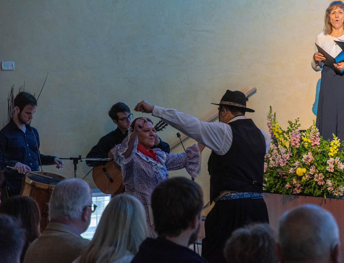 Teh prvih 15 pomladi zbora smo obeležili s petjem: Da bi biwa liepa ura, Kolo (solo: Jana Kastelic, Josefina Troha, Cvetka Pregelj), Mrzel veter tebe žene (solo: Mariana Poznič), Iskal sem dom (klavirska spremljava Ariane Žigart), La vieja (na bobnu in kitari spremljala Maksi in Sebi Žnidaršič, argentinska paisana in gaucho pa sta zaplesala chacarero), Mi pequeño amor, Alma llanera, The sound of music. Med izvedbo so se na ekranu vrstile fotografije zbora.