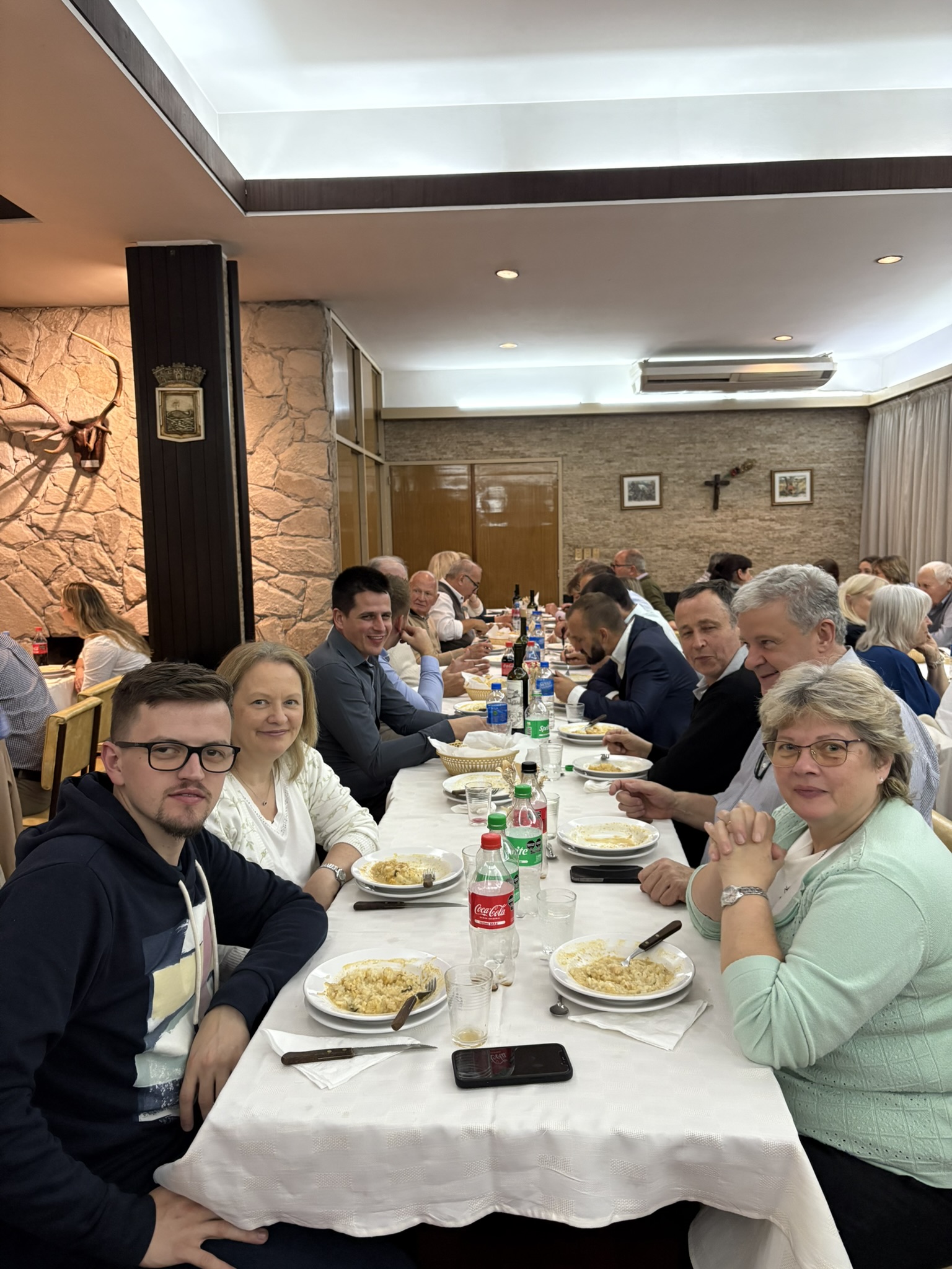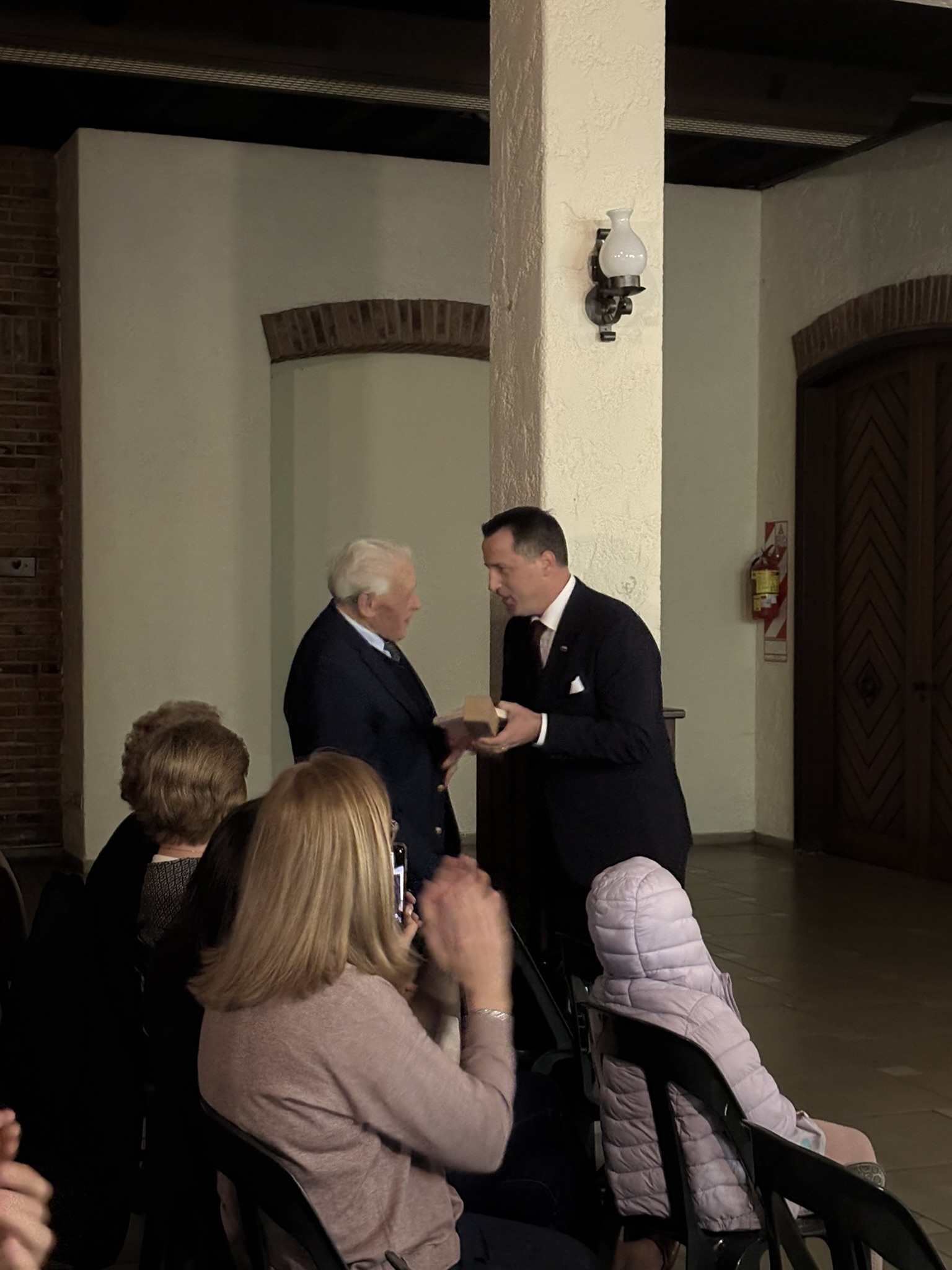 Med koncertom je besedo prevzel gospod Martin Selan, član naše sanjuške skupnosti. S prisrčnostjo se je zahvalil vsem prisotnim ter obudil spomine na čas, ki ga je pred leti preživel v Argentini, še posebej pa med njimi. Takrat je redno obiskoval prostore doma, sodeloval v odboru, mladinski organizaciji in seveda v pevskem zboru. S toplino in nasmehom se je spomnil tudi svoje družine in otrok, ki so bili dejavni člani skupnosti – obiskovali so slovensko šolo in sodelovali pri folklori. Njegove besede so dvorano napolnile s toplino in ganljivimi spomini, ki so nas opomnile, kako globoko nas povezujejo skupne korenine in prijateljstvo.