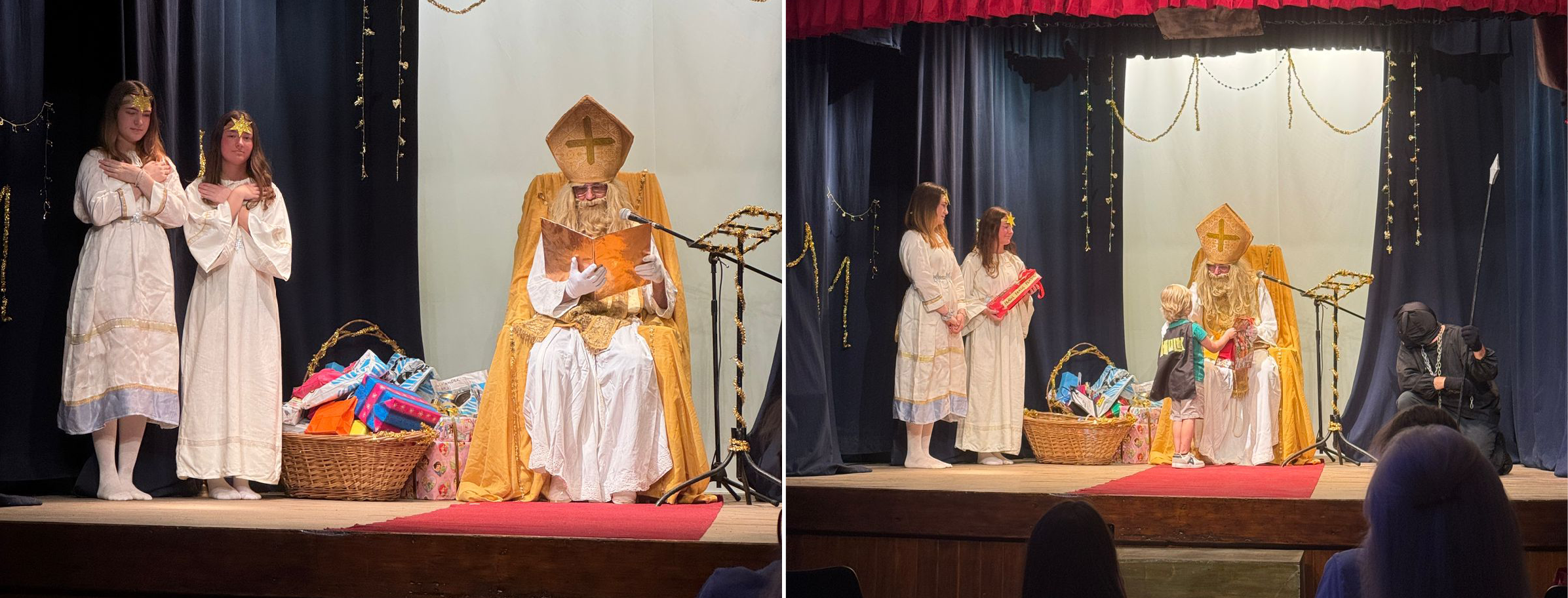 Sveti Miklavž kar rad zahaja v naš dom. Ponovno nas je obiskal prav na njegov god, 6. decembra. Obdaroval je ne le otroke, temveč tudi odrasle. Parklji so se sprehajali po dvorani in peljali poredne v goreč pekel. Angelčki so pa pomagali pri delitvi daril, ki jih je bilo kar precej. Lepo je obdržati take navade kot je Miklavževanje. Človek se nehote spominja na otroška leta, ko smo nestrpno čakali prihod svetnika, mu pisali pisemca, odštevali dneve do njegovega obiska, bili pridni in več molili. Zlati časi, kajne?