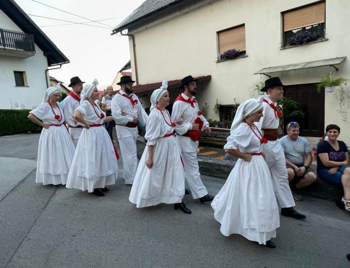 Drugi nastop smo imeli v Logatcu na 41. večeru pri vodnjaku na Čevici. Po nastopu so nas prijazno povabili na večerjo, kjer smo ob prijetnem pogovoru delili zgodbe z domačini. Njihova gostoljubnost nas je prevzela in res smo se počutili kot doma.