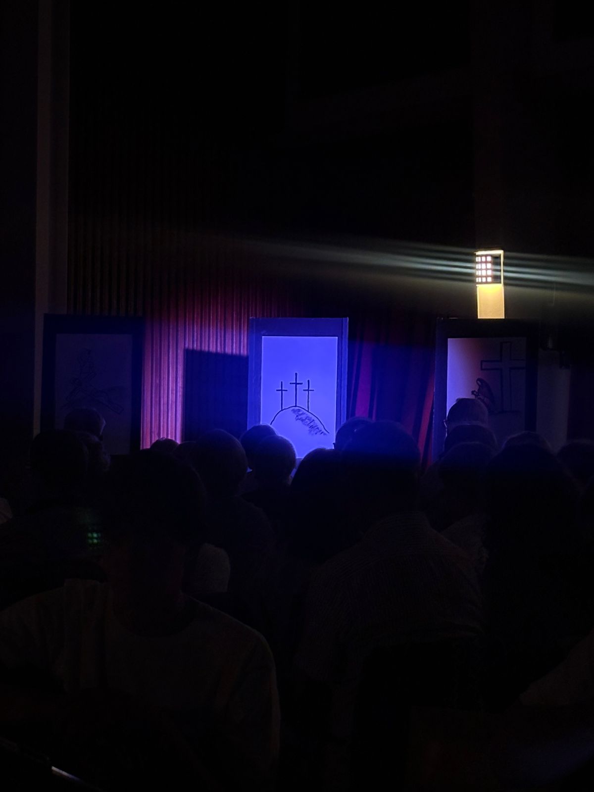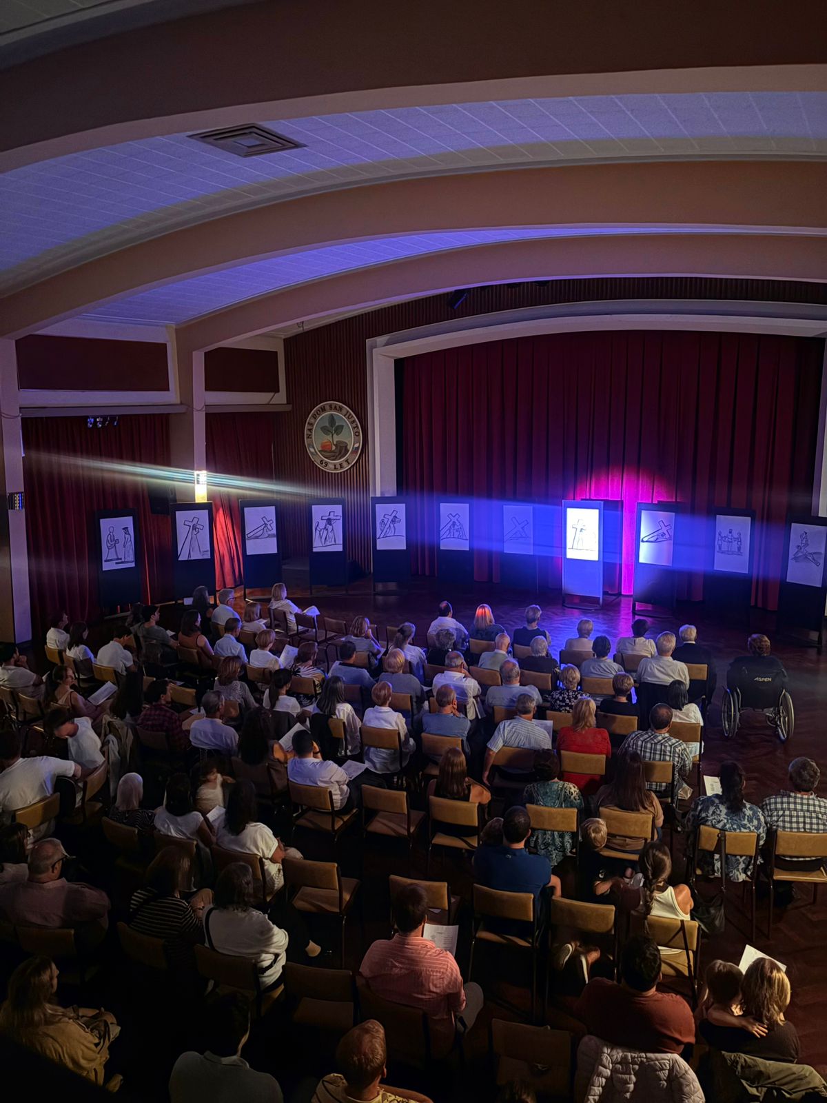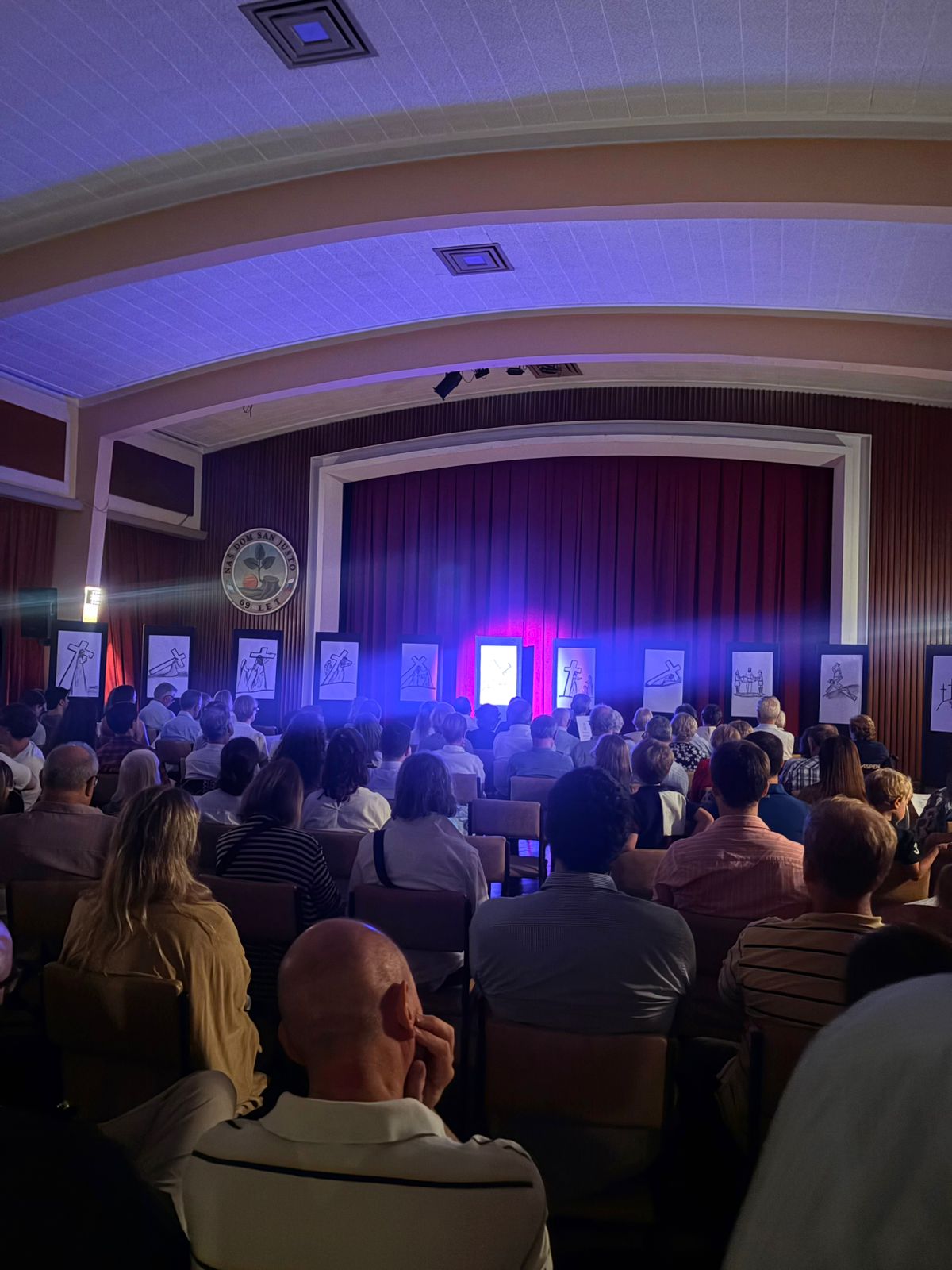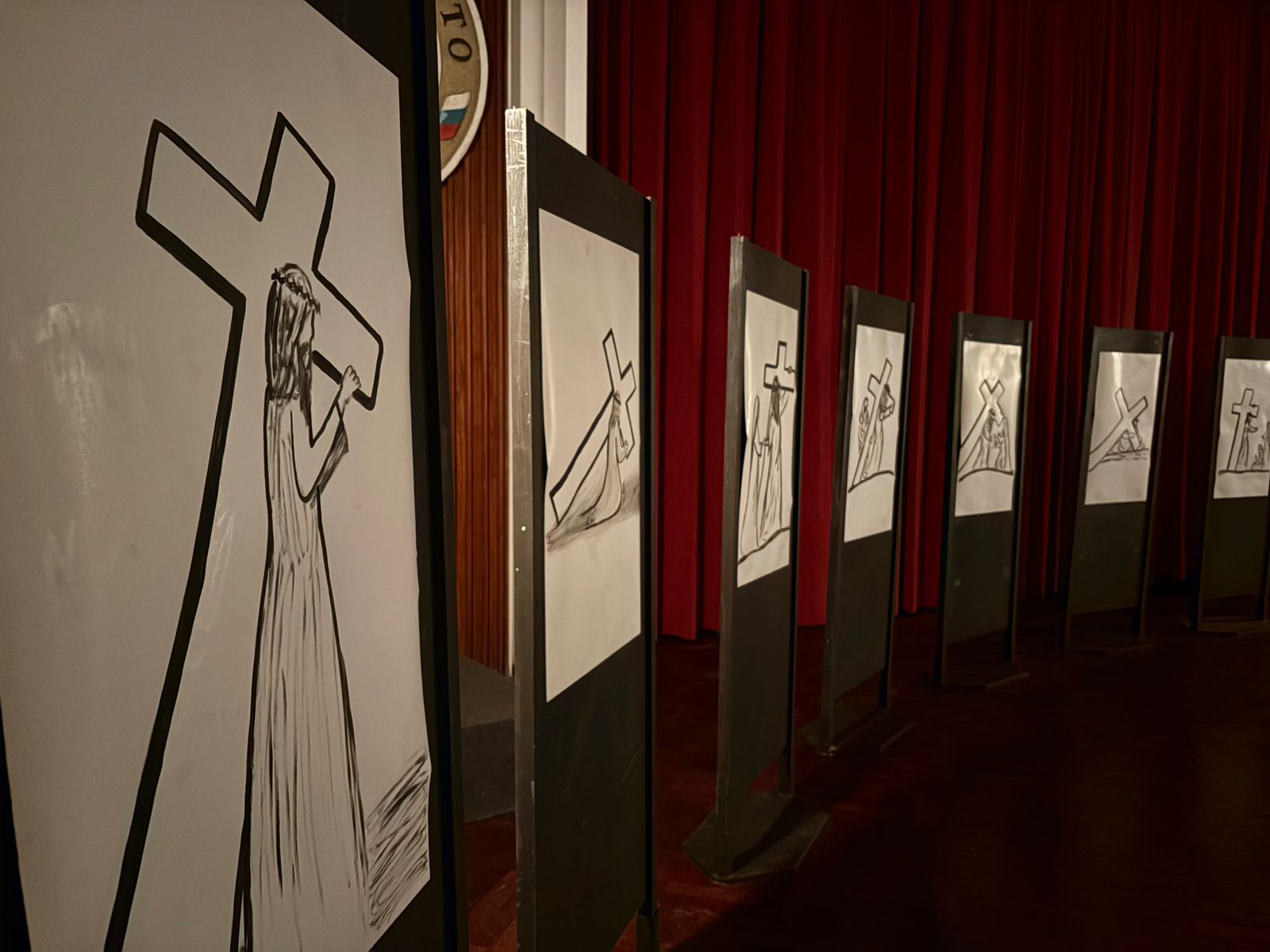 V dvorani so bile pred vsemi narisane podobe štirinajstih postaj, ki so nam pomagale premišljevati posamezne postaje ter nas navdihovale, da bi živeli po tem, kar nas je učil Jezus Kristus: »Če hoče kdo hoditi za menoj, naj se odpove sebi, vzame svoj križ in hodi za menoj«.