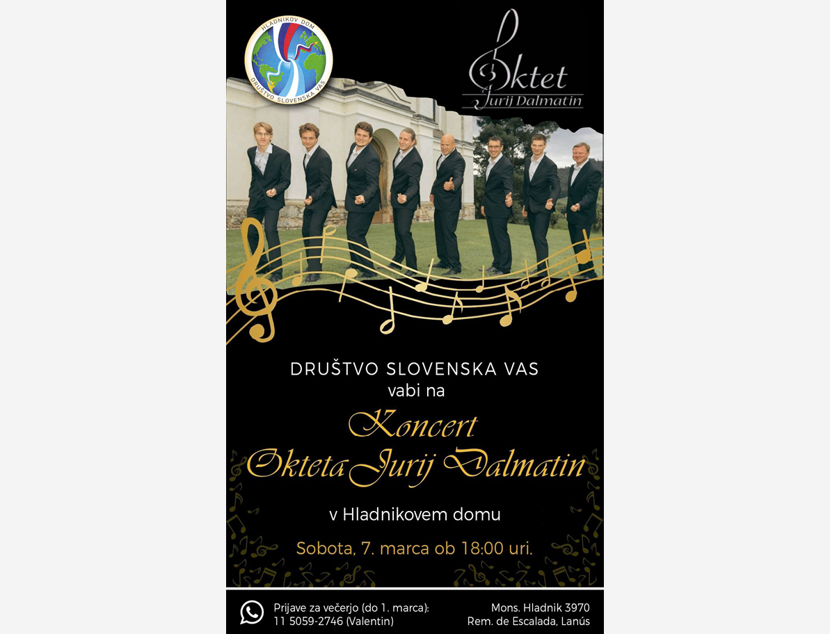 V soboto, 7. marca, smo v Slovenski vasi v Lanusu imeli čast gostiti oktet Jurij Dalmatin iz naše ljubljene Slovenije. Skupina prostovoljcev jih je sprejela v hotelu v centru Buenos Airesa in jih pospremila do našega središča.