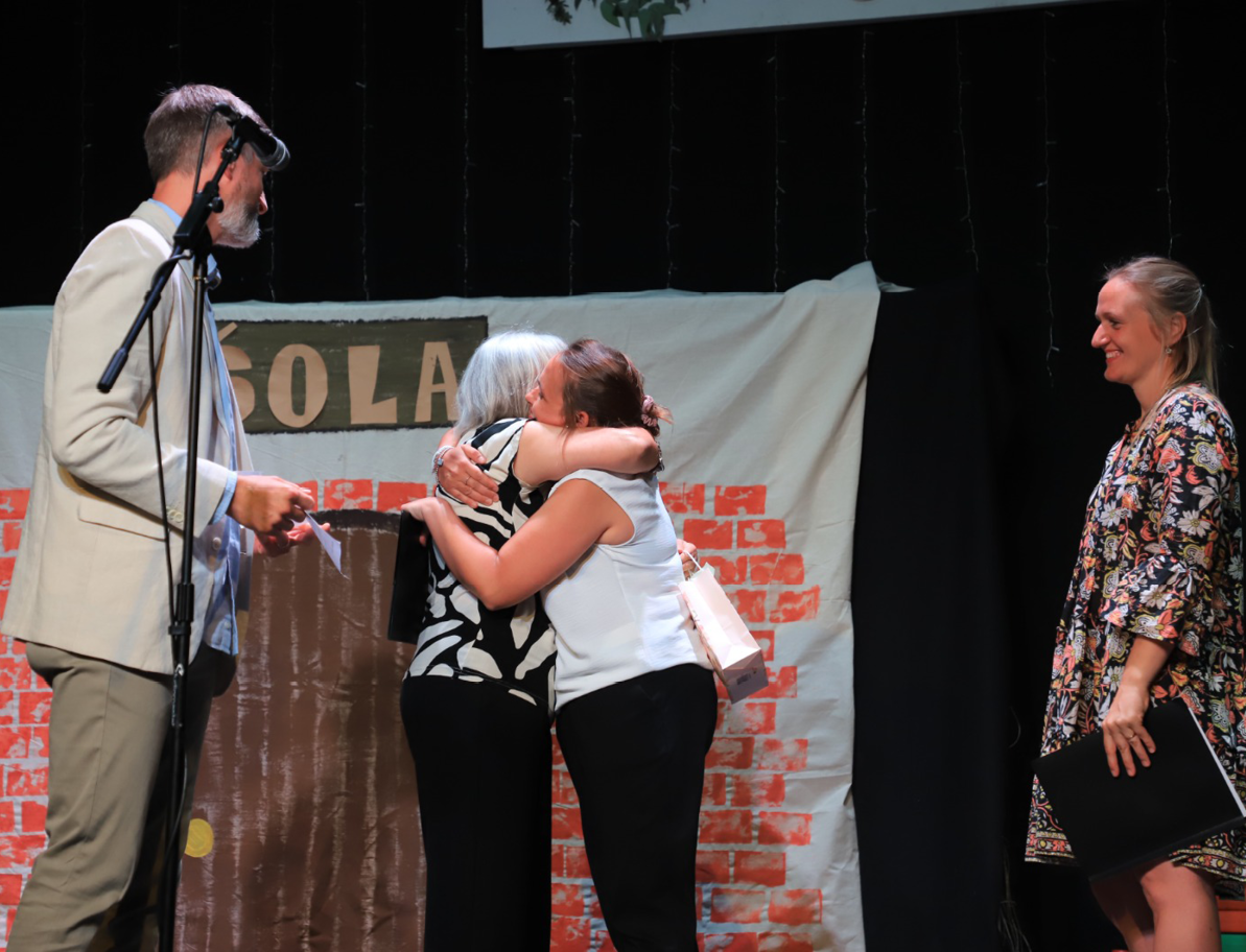 Zaključili smo z govorom predsednice odbora staršev, Marte Belec Armerding, in s tem se je slovesnost formalno zaključila – ne pa občutek povezanosti. Tik pred končnim aplavzom je prišel čas za nekaj posebnega: za zasluženo slovo ravnateljice, ki je dolga leta povsem nesebično podarjala svoj čas, trud in srčnost. Njena prisotnost je tlakovala poti, podpirala procese in pustila sledi, ki bodo ostale z nami. Njeno slovo ni bil žalosten odhod, temveč globoka zahvala, saj odraščati pomeni tudi prepoznati tiste, ki so s svojo svetlobo pomagali, da je ta vrt lahko zacvetel.