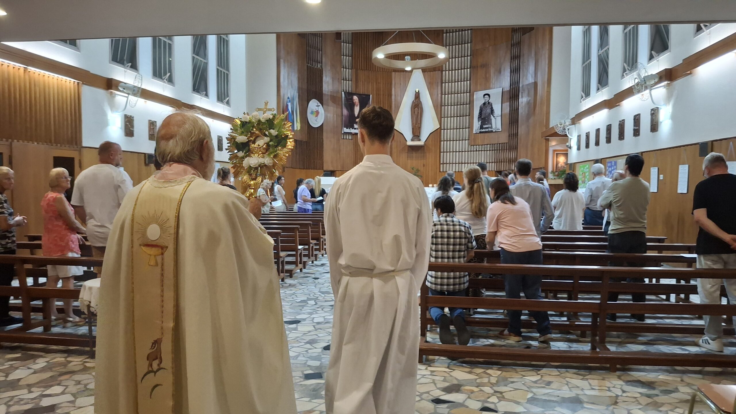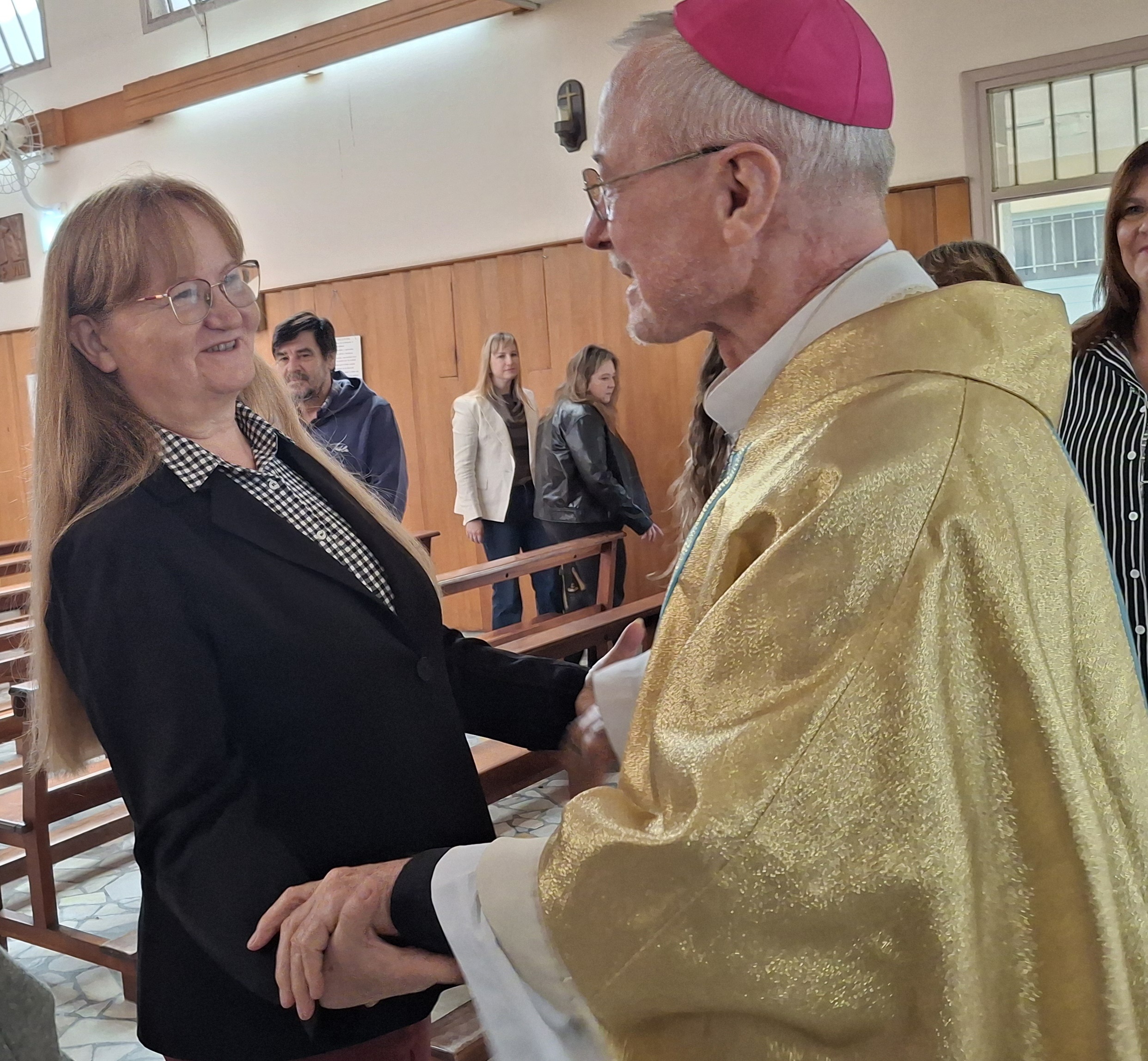 Na velikonočno nedeljo smo v cerkvi Marije Kraljice obhajali slovesno slovensko sveto mašo, ki jo je vodil nadškof Andrej Stanovnik. Praznovanje Kristusove zmage nad smrtjo je bilo še posebej doživeto, saj so s petjem, pod vodstvom Monike Urbanija, sodelovali tudi naši otroci. Ob koncu slovesnosti si je gospod nadškof vzel čas in ob izhodu osebno pozdravil prav vse navzoče, kar je še dodatno obogatilo naše praznično srečanje.