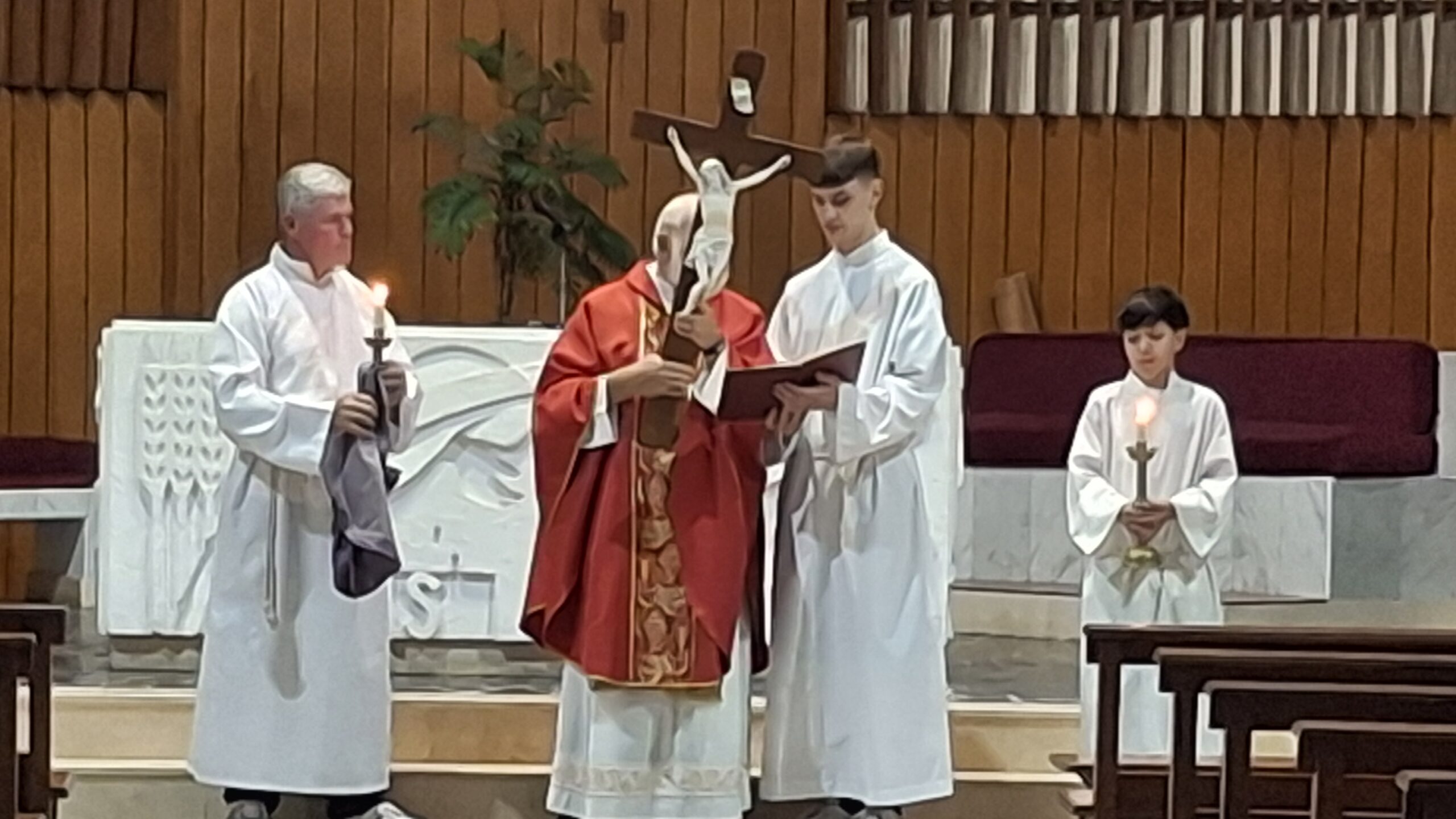 Na veliki petek smo se v molitvi in tišini spominjali Gospodovega trpljenja. Obred je vodil g. Bokalič, obsegal pa je branje pasijona, češčenje križa, slovesne prošnje za vse potrebe in sveto obhajilo.