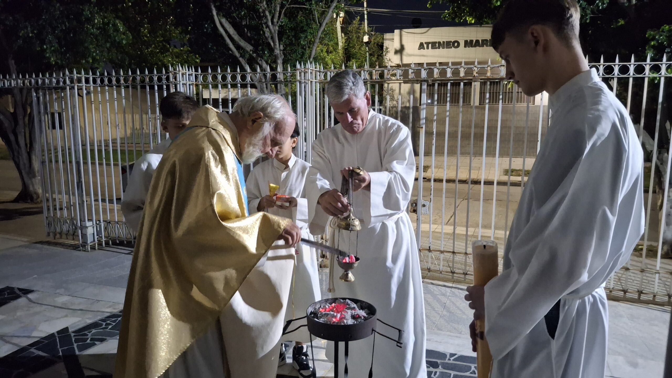 Zvečer je sledila velikonočna vigilija: blagoslov ognja in velikonočne sveče, slavje luči, oznanilo velike noči, besedno bogoslužje, obnovitev krstnih obljub in evharistija. Sveto mašo je daroval g. Jože Bokalič.