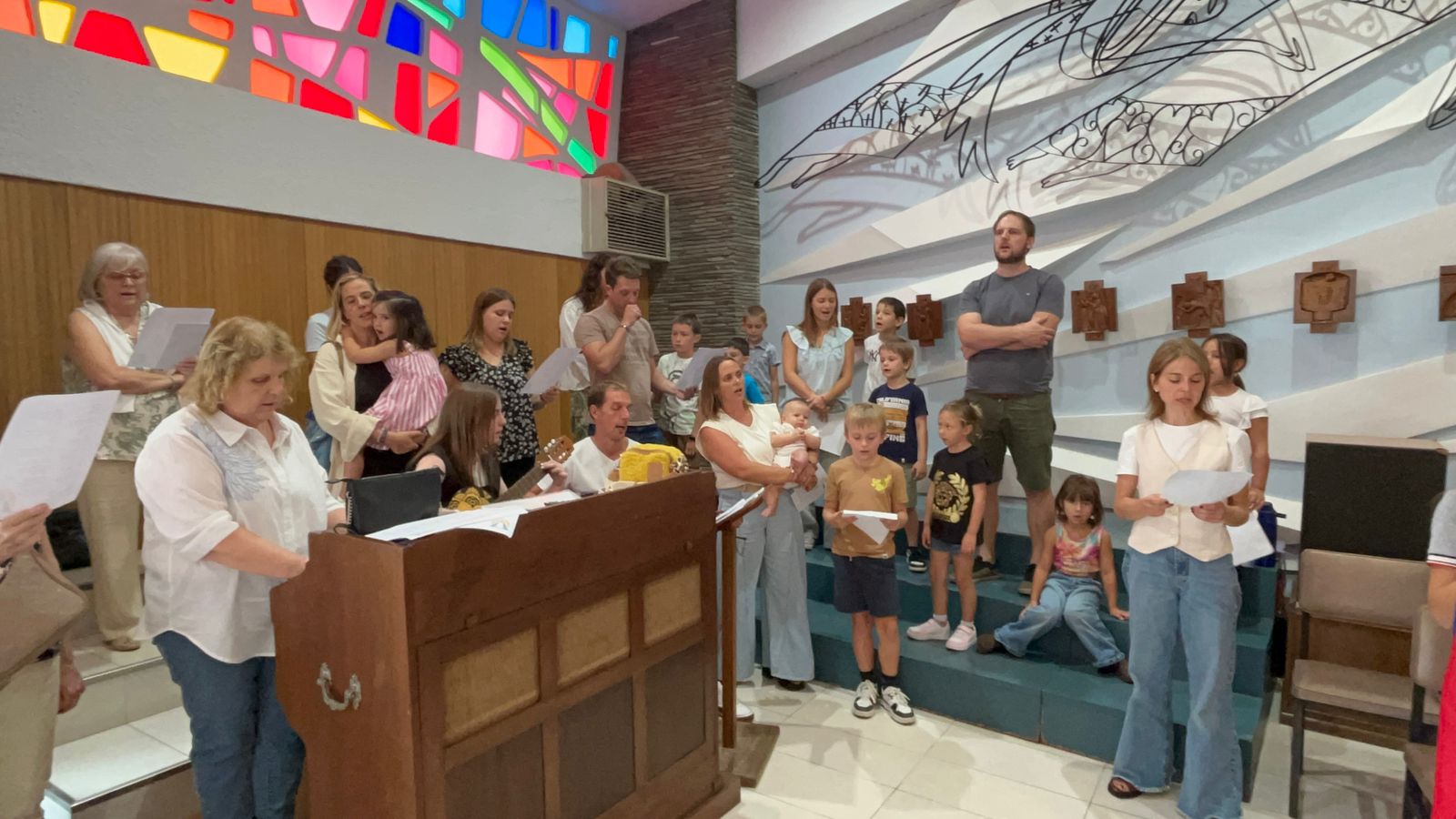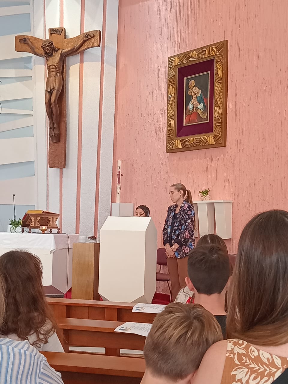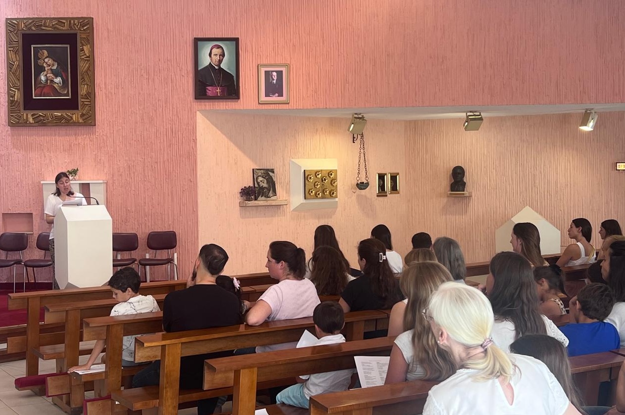 Po končani maši sem kratko nagovorila otroke, naj ne omagajo in še naprej vlagajo energijo v slovenščino in v slovensko šolo, saj na koncu poti vidimo uspehe, kar je čudovito, čeprav je včasih naporno tudi ob sobotah zgodaj vstajati ali med tednom hoditi na kakšne vaje. Prosila sem jih, naj pomagajo drug drugemu, naj bodo med seboj strpni in prispevajo vsak svoj delež v sožitju sobivanja, naj vedno pomagajo prijatelju in sošolcu!